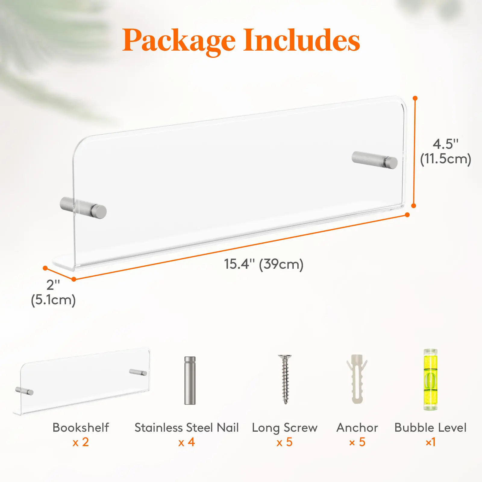 ·Shelf: 15.4" (39.1 cm) L × 2.0" (5.1 cm) W × 4.5" (11.4 cm) H