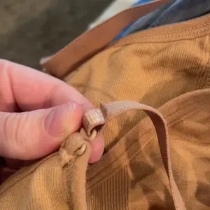 El tirante está unido a el broche con calor y la unión está muy dura y lastima , raspa y ampolla el material está bien y la talla demaciado grande