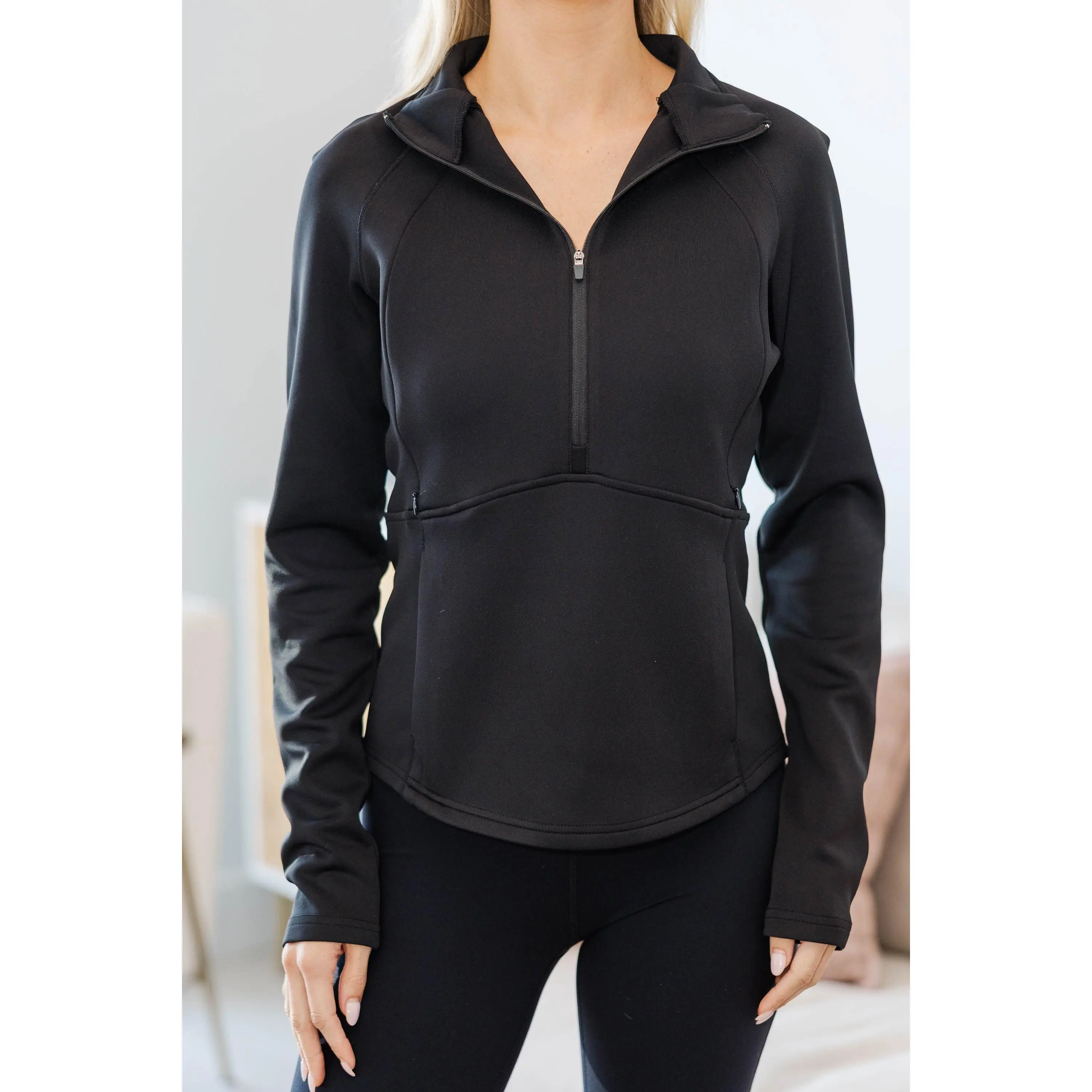 NURSING COLLECTION: Go-Time Black Half Zip Pullover