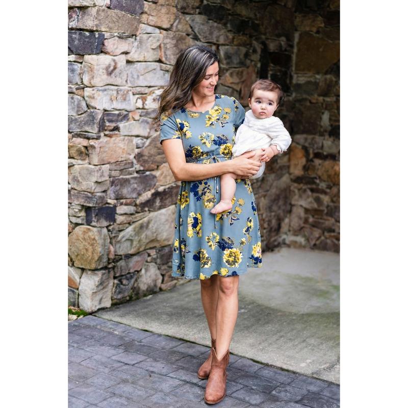 The drawstring nursing dresses are seriously just the best. If you are between sizes, and have a fairly normal sized chest, size down. I wear large in a lot, but this dress fits perfectly in a medium. I'm 5'6 and it hits above the knee which I much prefer compared to the midi-dresses. Easy nursing access that doesn't even look like nursing access, so can be worn even when not breastfeeding.