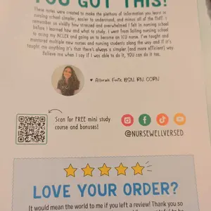 So cute! Got all the info you need! Abt to use this to study for my nclex the next few months!! So excited to use it!! Little stickers and cute little note too!! The sweetest!! Thank you Ally! Every nursing student’s dream!!!