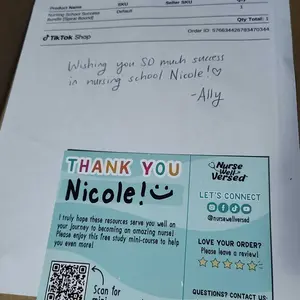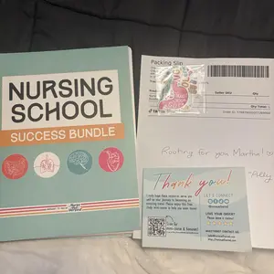 Cute, thoughtful packaging, and amazing content. It comes with stickers and a handwritten note which is a very nice personal touch. This is going to be helpful to any nursing student.