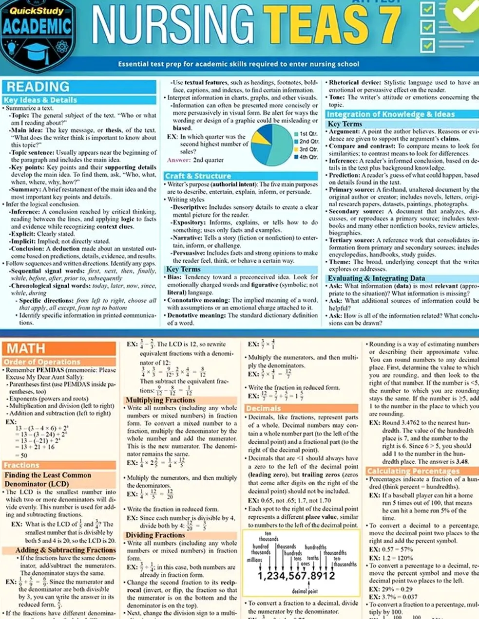 Nursing TEAS 7: a QuickStudy Laminated Reference Guide