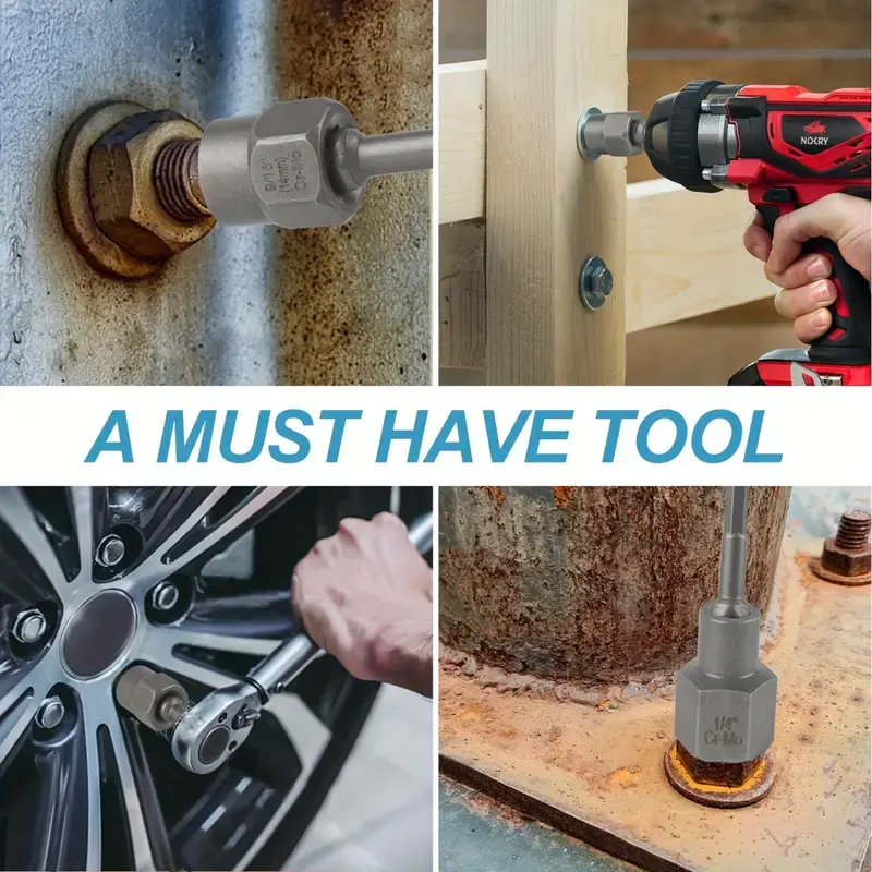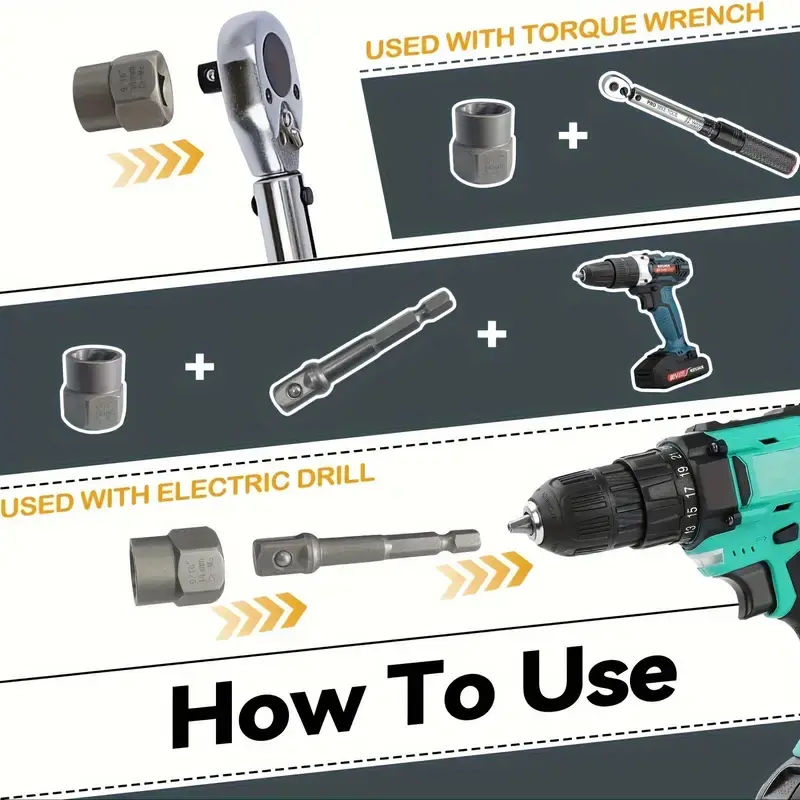 ·Standard 3/8" Drive Head: Each bolt remover with a standard 3/8-inch drive, uses the 1/4"-3/8" hex adapters that can connect with a common impact wrench, tap handle, and ratchet wrench. Easily remove lug nut, oil drain plug, broken and seized bolts. Perfect for every home and mechanic, home repairs, auto repairs, and mechanical repairs