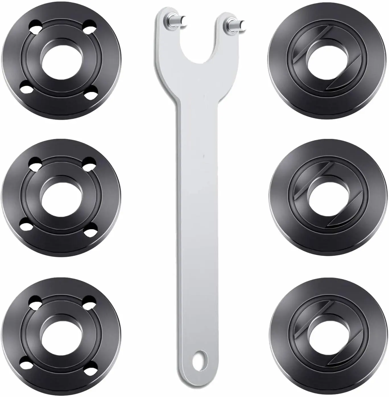 ·VERSATILE VALUE SET: Includes 1 angle grinder wrench and 6 angle grinder nuts (3 inner flange nuts + 3 outer flange nuts), Perfect for a variety of installation and replacement needs.