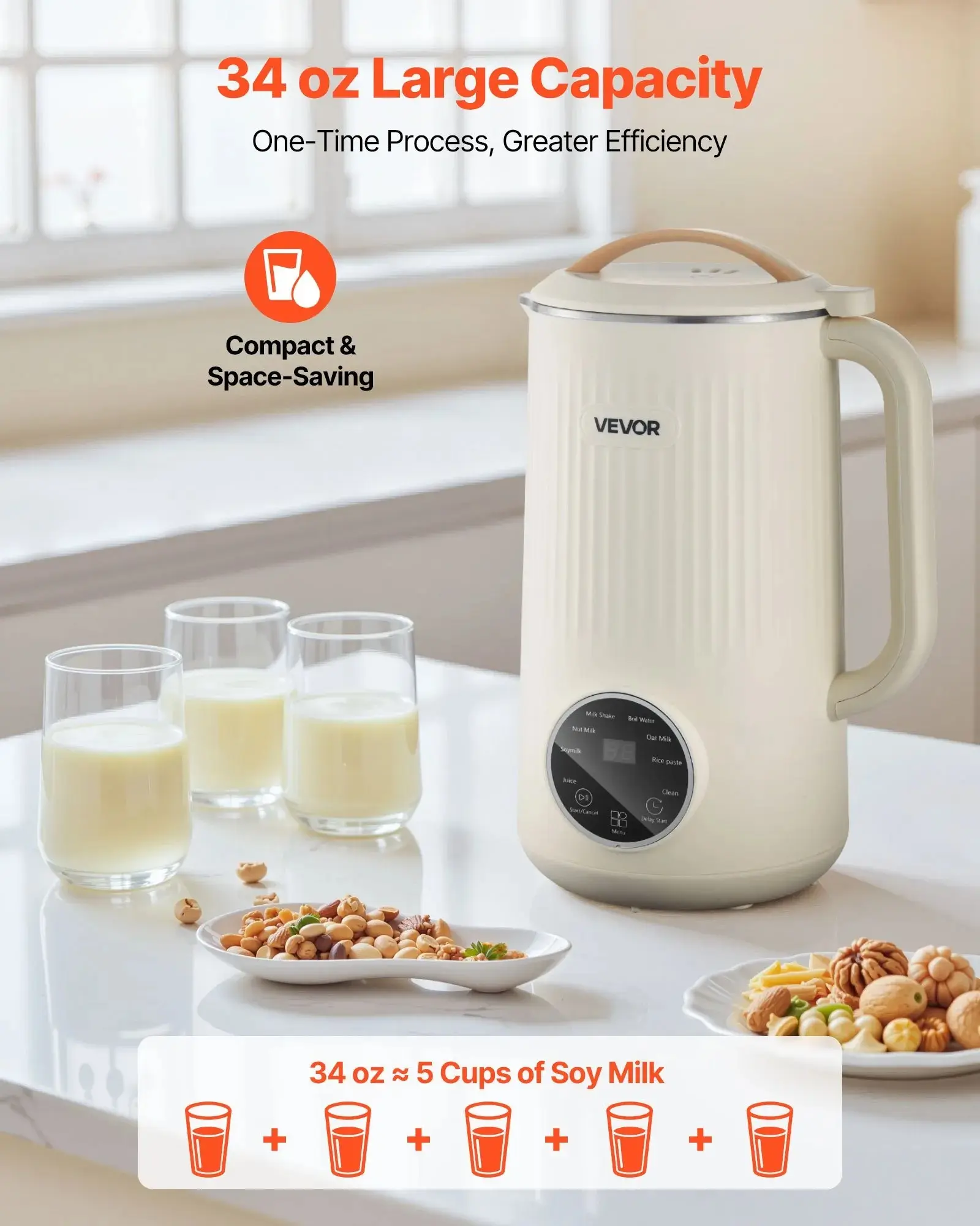 5. VEVOR 8-in-1 Nut Milk Maker 34/41 oz Soy Milk Maker Homemade Oat Nut Soy Juice