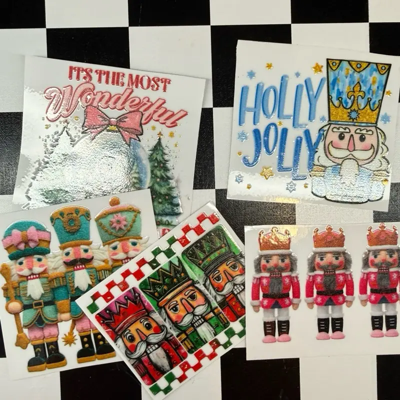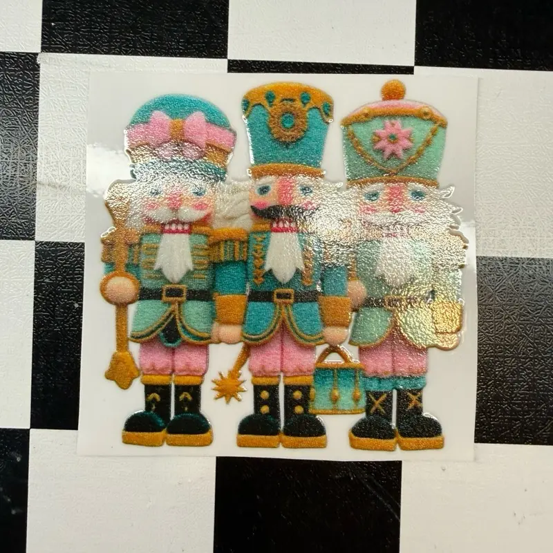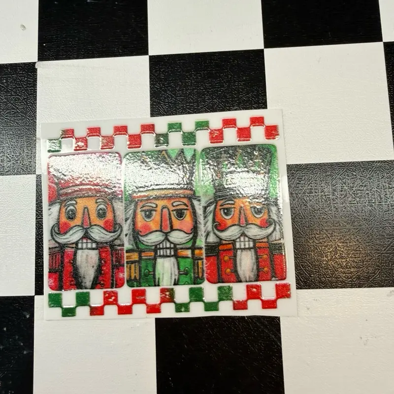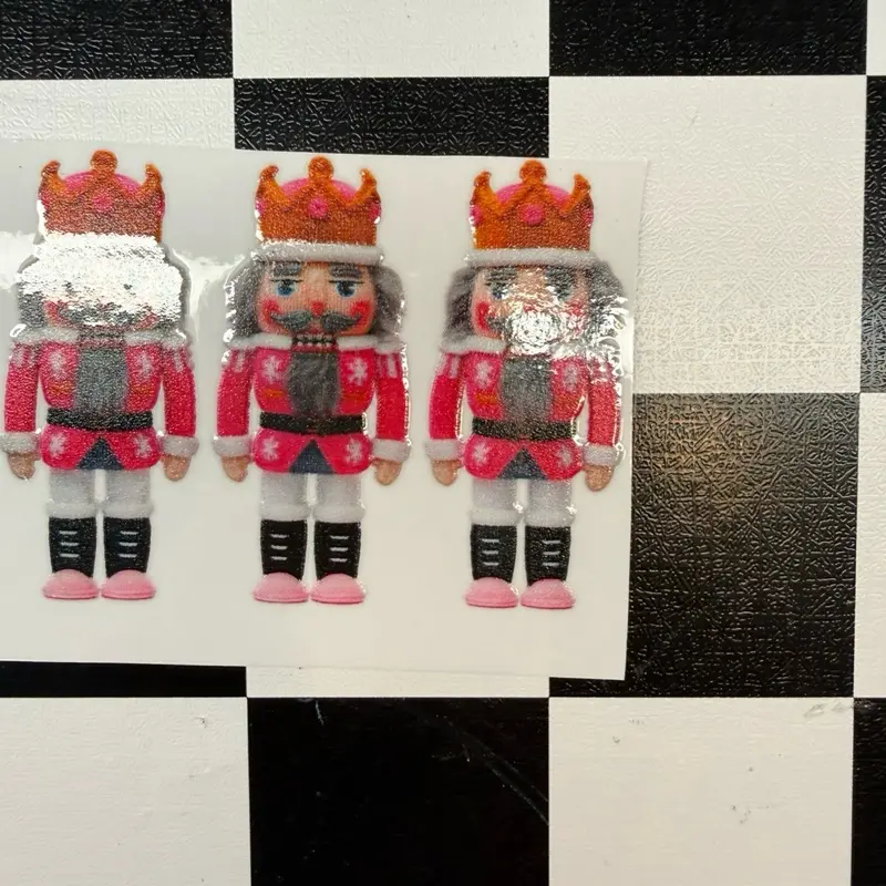 Nutcracker bundle: 3 inch UVDTF prints made in Minneapolis by me, ItsRozeyBoo. This package of 5 high quality prints. It is perfect for adding to acrylic blanks with some glitter and resin to make your own customized ornaments.