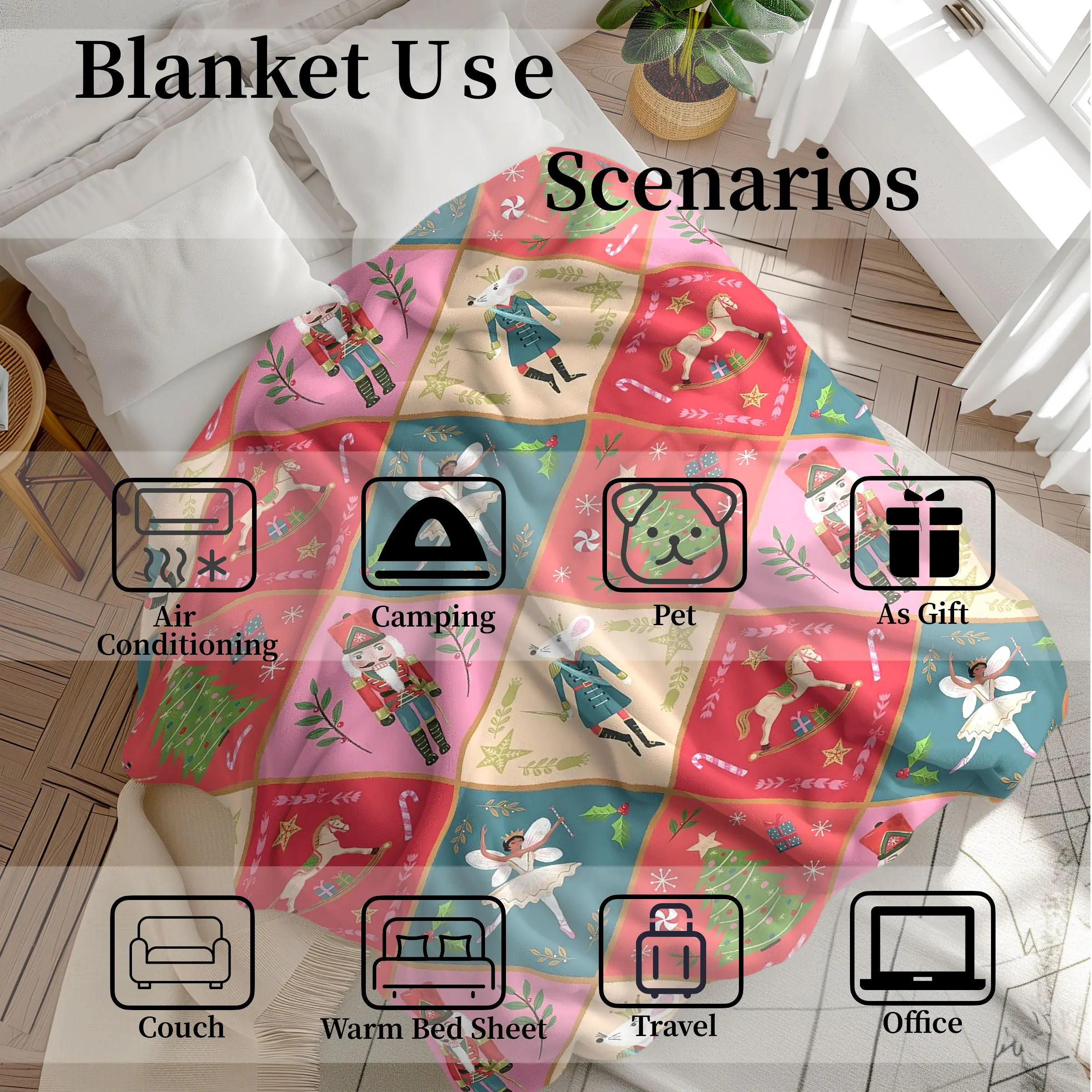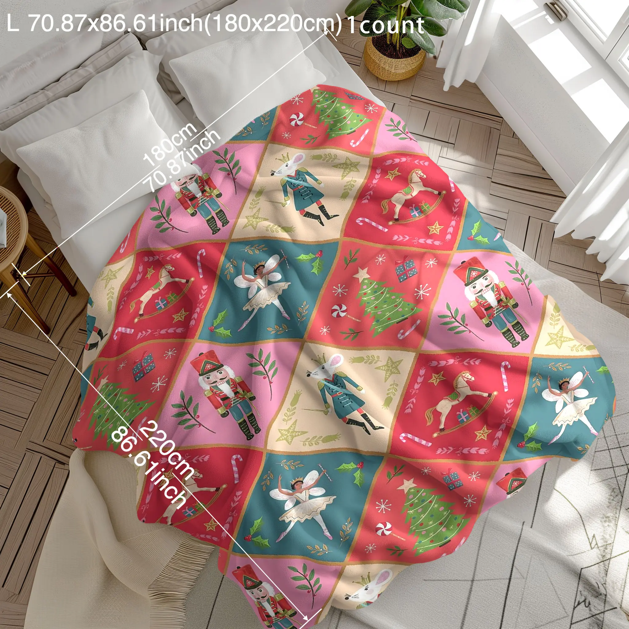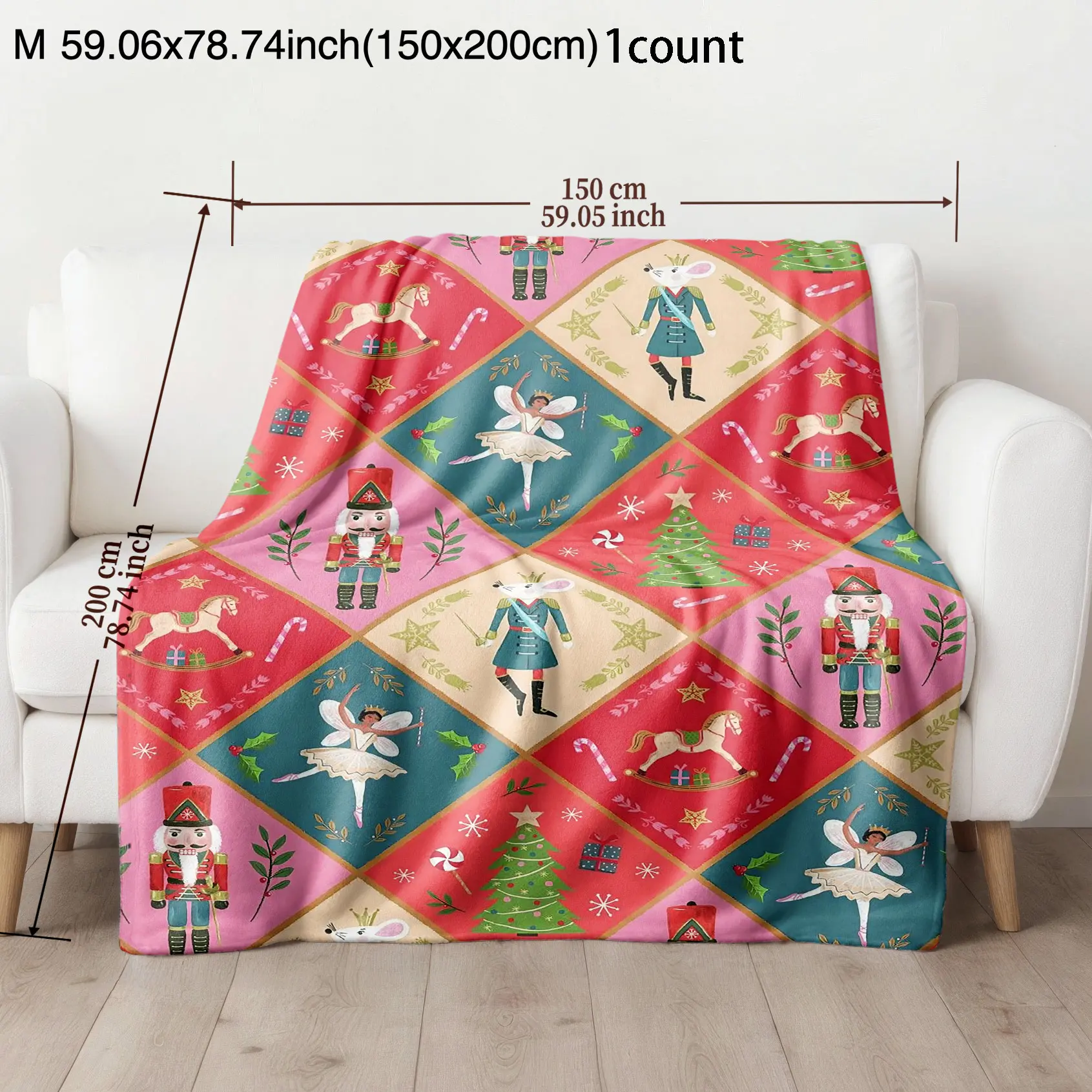 Royal Opera Modern Christmas Flannel Blanket, Nutcracker Design, Multi-Season Use, Ideal Gift, Stain Resistant Fabric