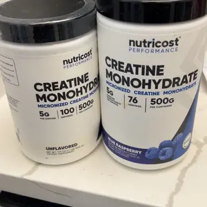 ·Nutricost Creatine Monohydrate Powder – Unflavored, 500g & Blue Raspberry, 500g