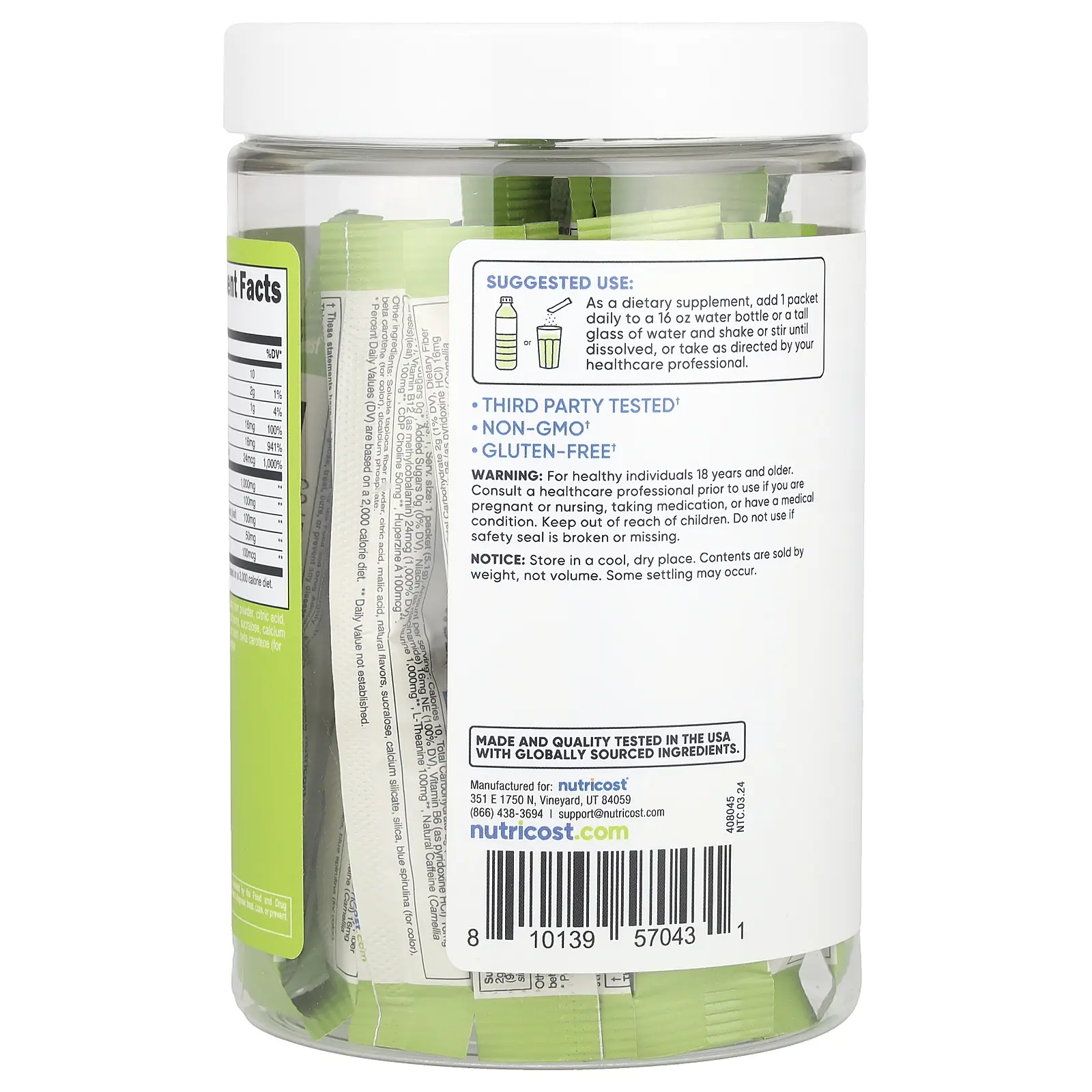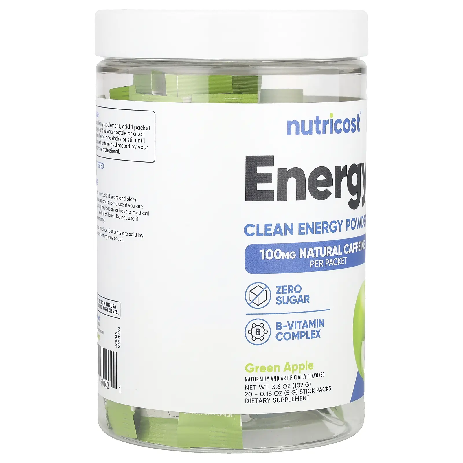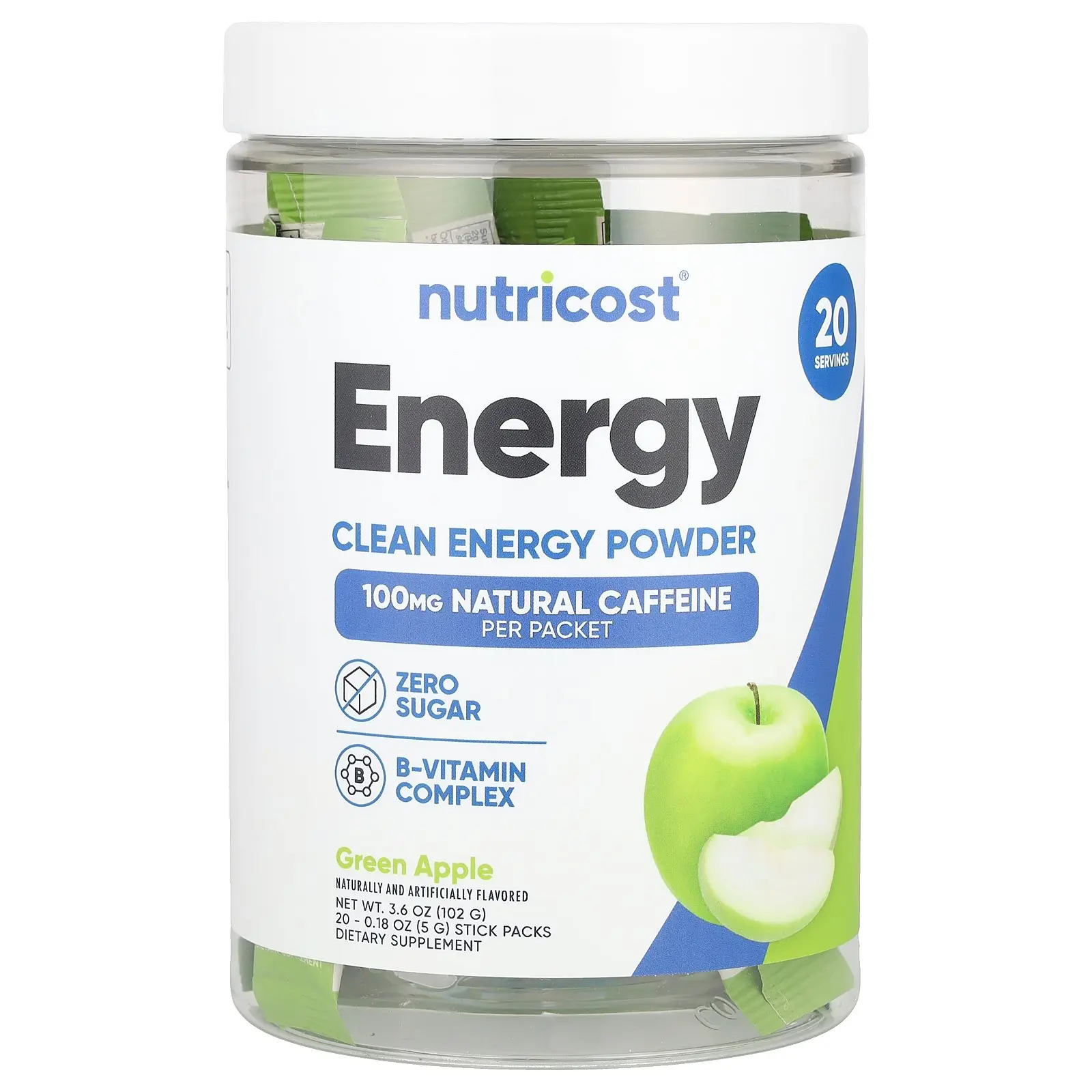 5. Nutricost Energy, Clean Energy Powder, Green Apple, 20 Stick Packs, 0.18 oz (5 g) Each