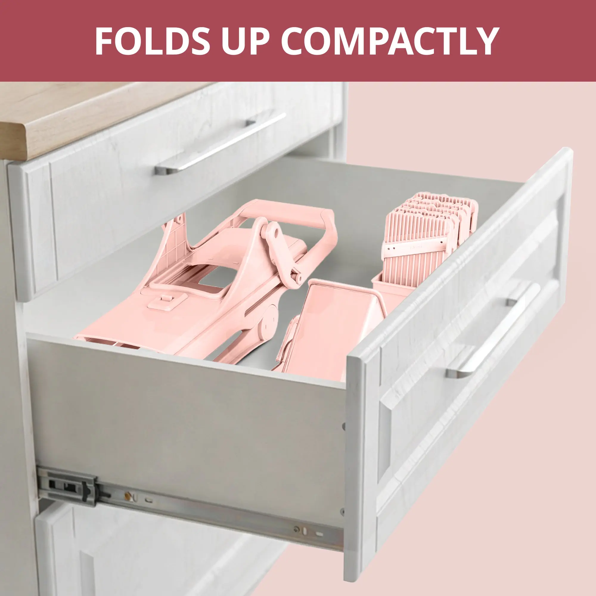 ·Compact & Foldable for Easy Storage: The folding stand and compact design make the Nutrislicer easy to store in your kitchen cabinets or drawers, saving valuable counter space.