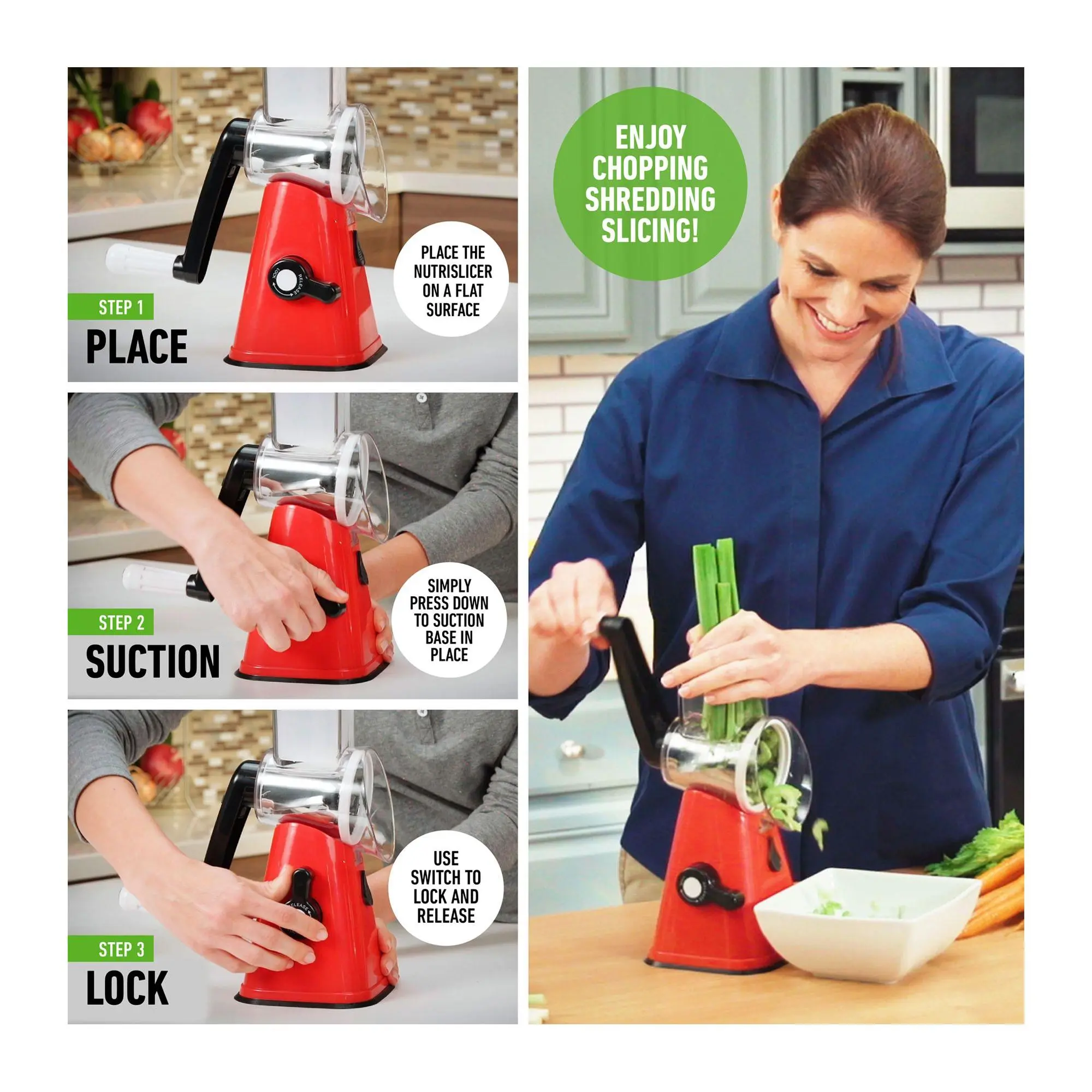 Shred, slice, and chop without breaking a sweat using this time-saving rotary grater that ensures sharp cuts at record speed. From Nutrislicer.