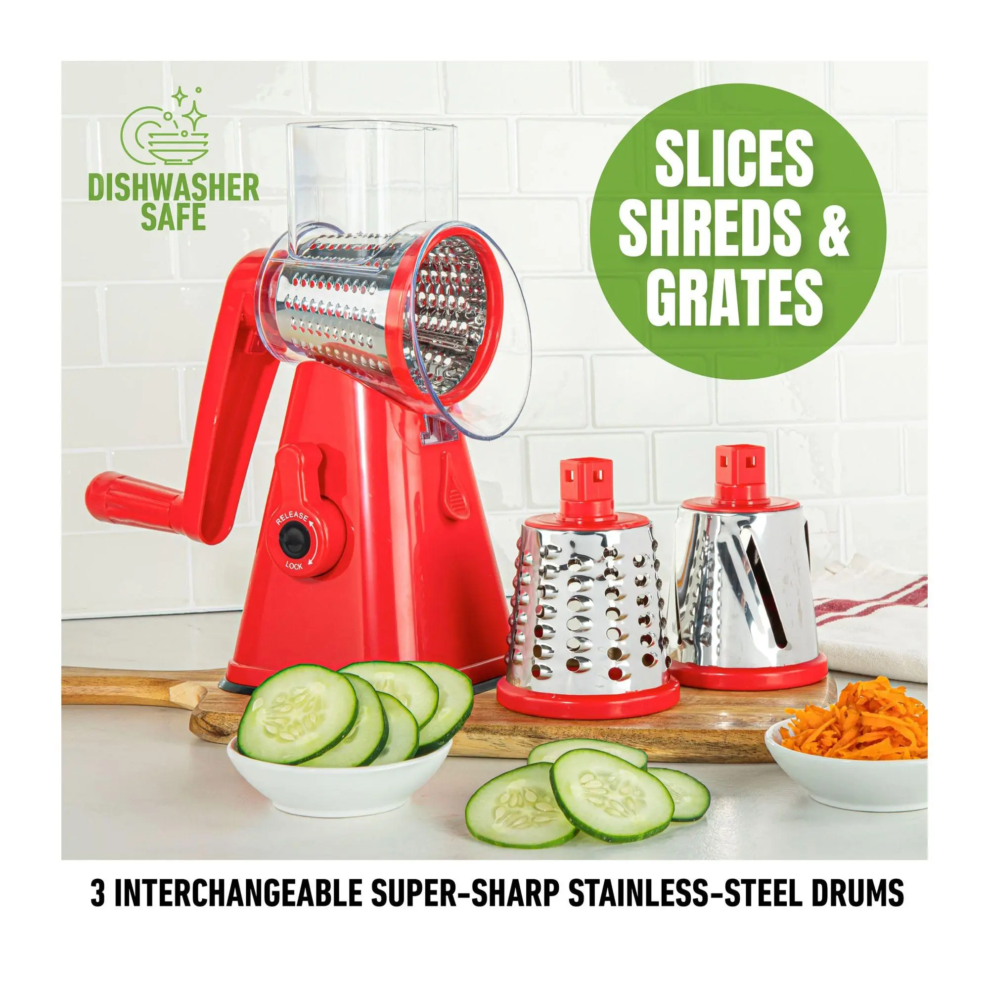NutriSlicer Rotary Grater with 3- Interchangeable Blades