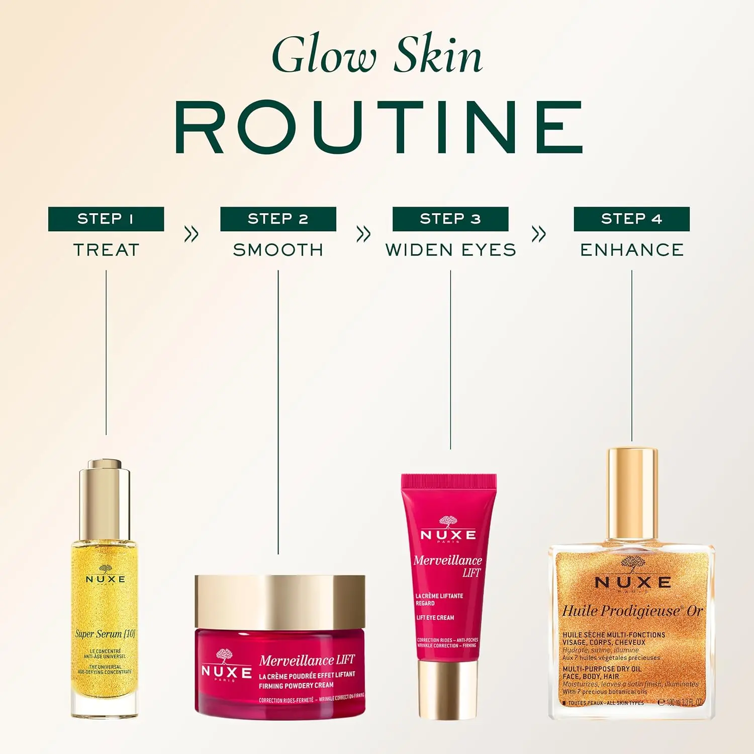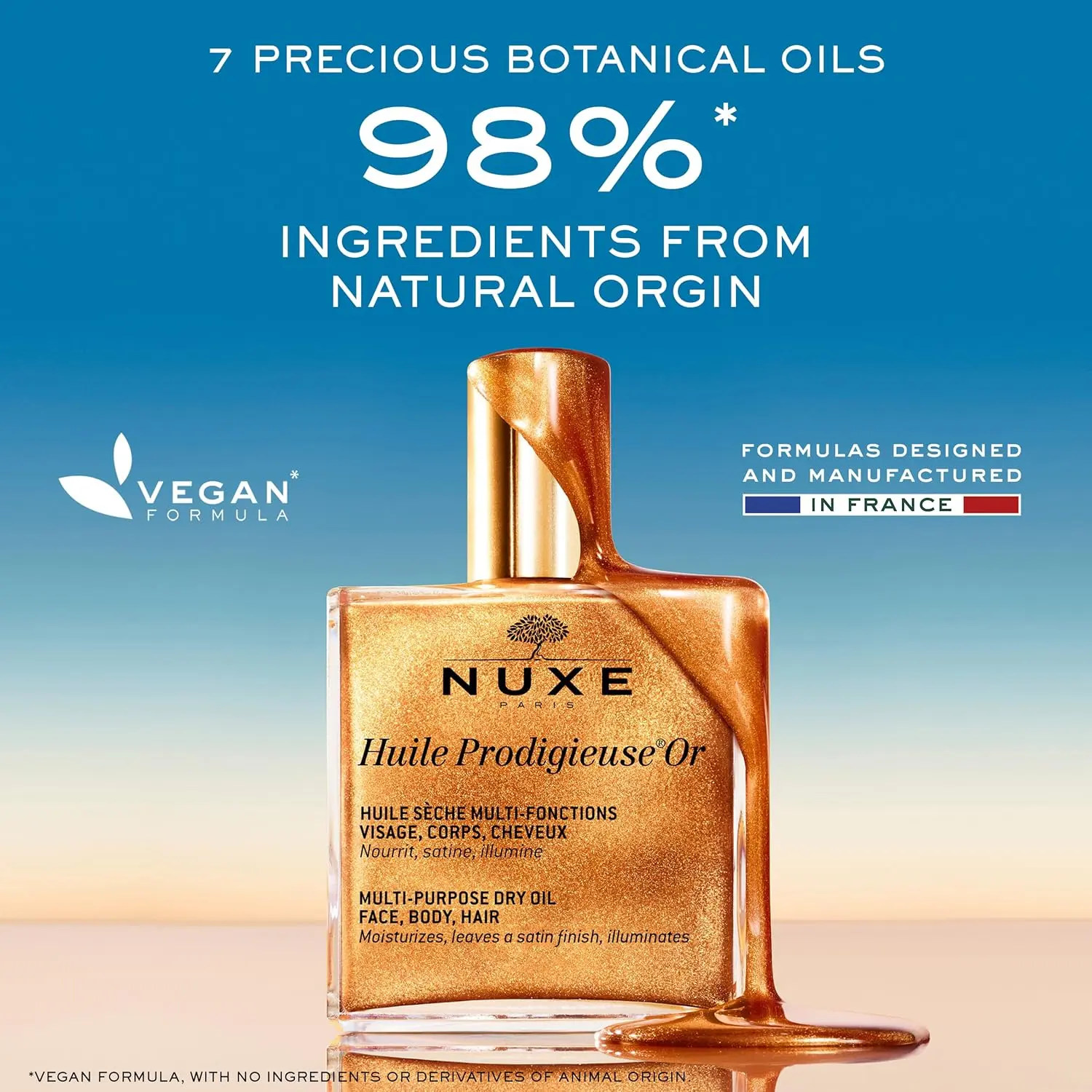 ·To create its Huile Prodigieuse, NUXE selected 7 precious 100% botanical origin oils: Tsubaki, Argan, Macadamia, Borage, Camellia, Hazelnut, Sweet Almond.