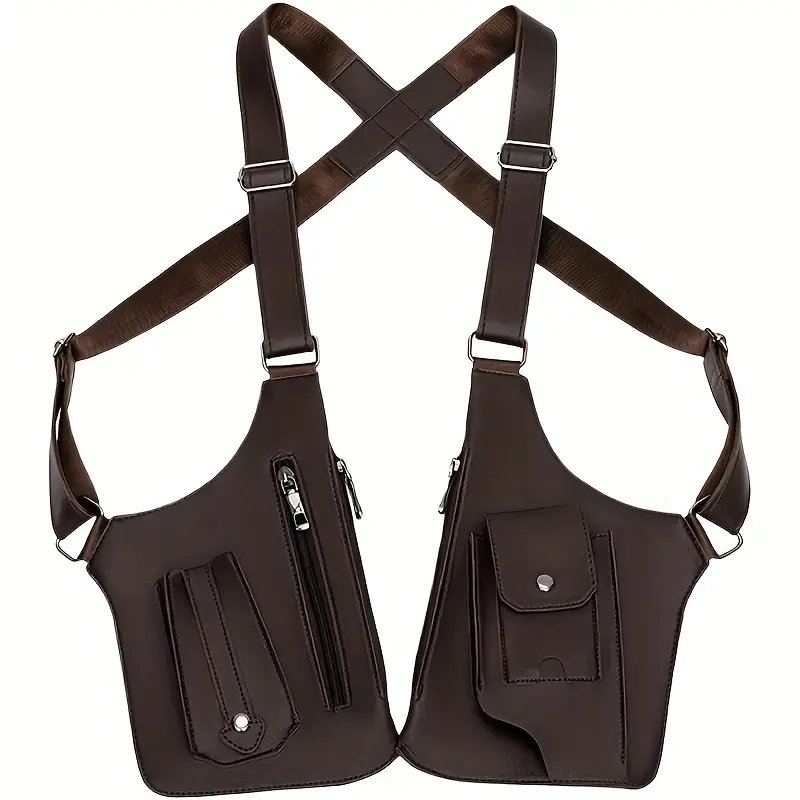 Men's Tactical Multi-Purpose Vest Bag Nylon & PU Leather Durable Lightweight with Adjustable Straps Zipper Closure Waterproof Fanny Pack for Hiking Camping Traveling