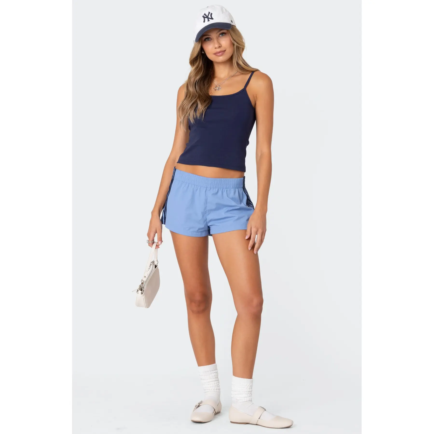 Loveee these pair of nylon shorts!! True to size, if you want a bigger fit i recommend to size up but the waist band is stretchy! Material is 10/10, does not feel cheap and it’s very comfortable. It arrived around estimated time too.