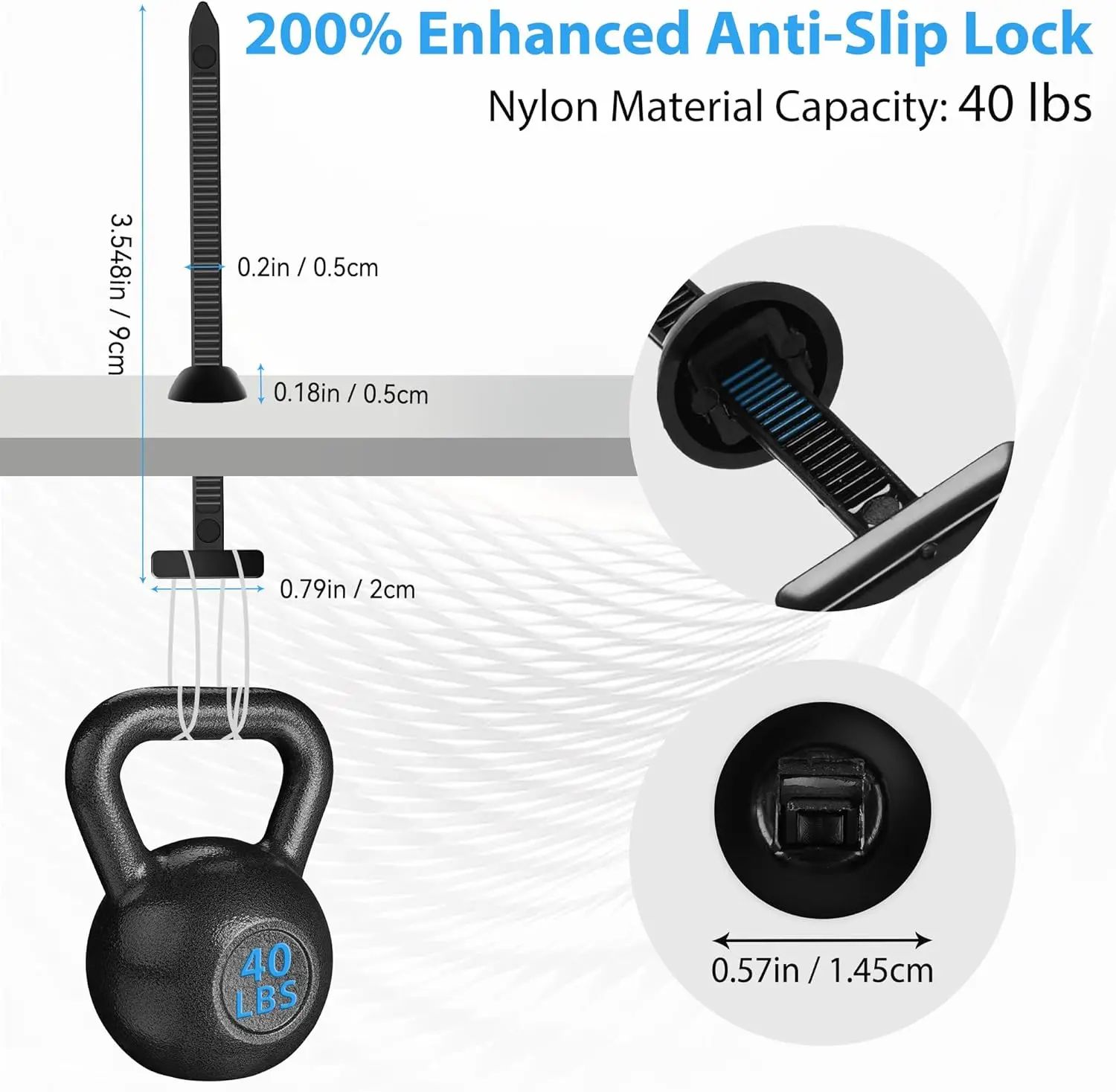 【Easy to Install, No Tools Needed】 Two installation methods: 1. Fold and push the T-head into the hole (0.33 in or larger); 2. Insert the tail end through the hole (0.2 in or larger) if space allows. Simply cut off the excess after locking in place