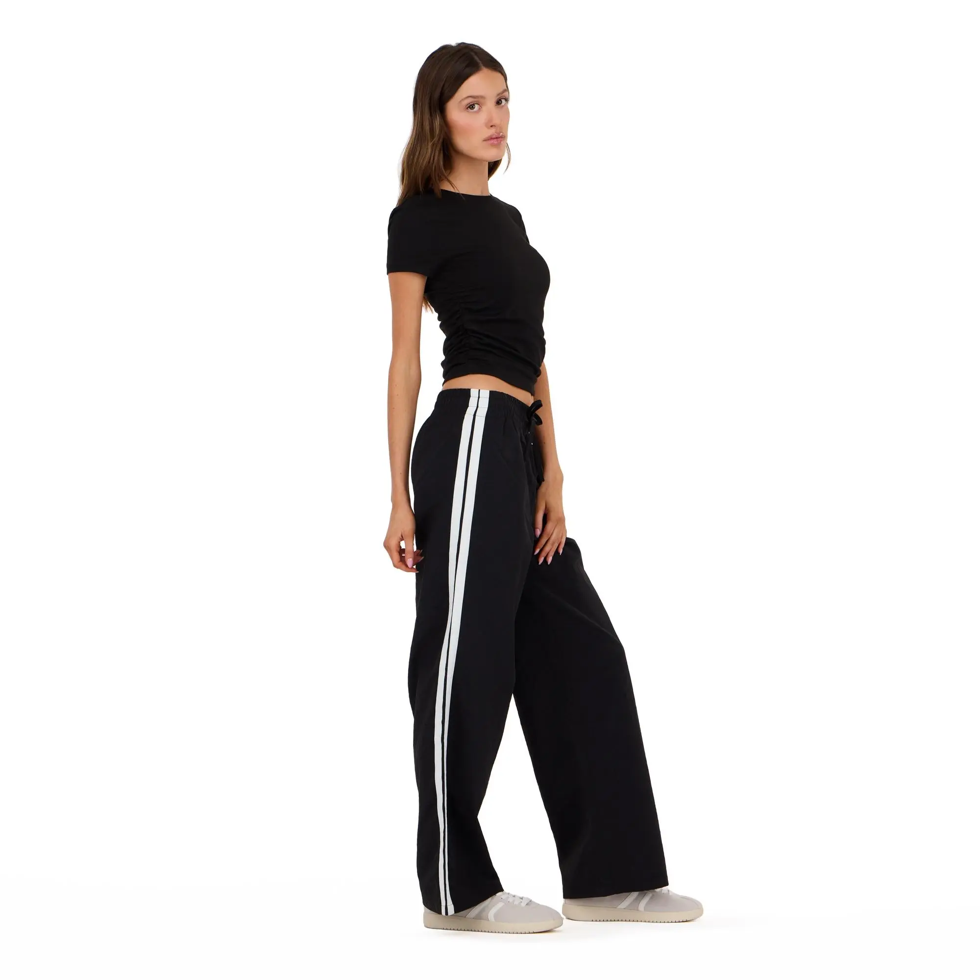 Forever 21 Women's Nylon Wide Leg Pant with 2 Stripes
