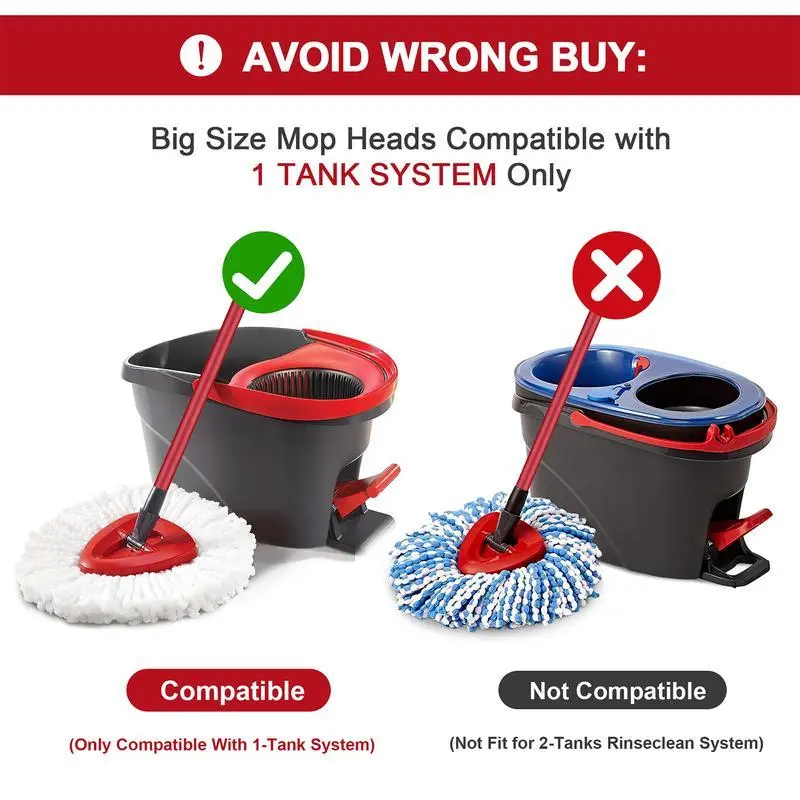 BE AWARE: The mop head replacement is compatible with 1-chamber mop system Only, Not for dual-chamber Rinse Clean mop bucket.