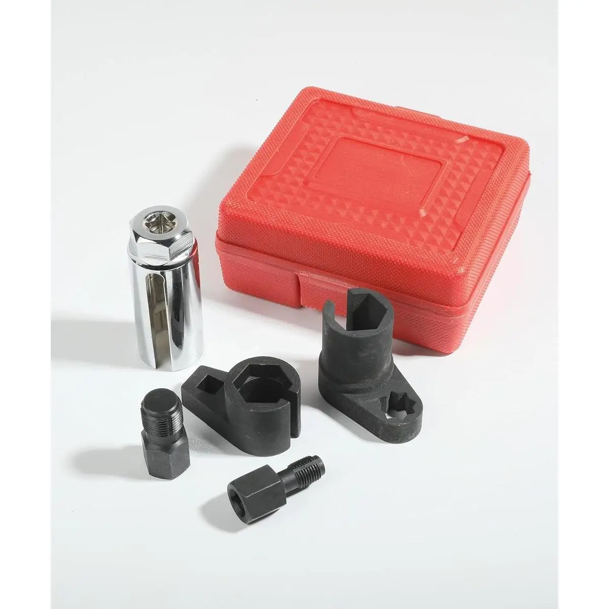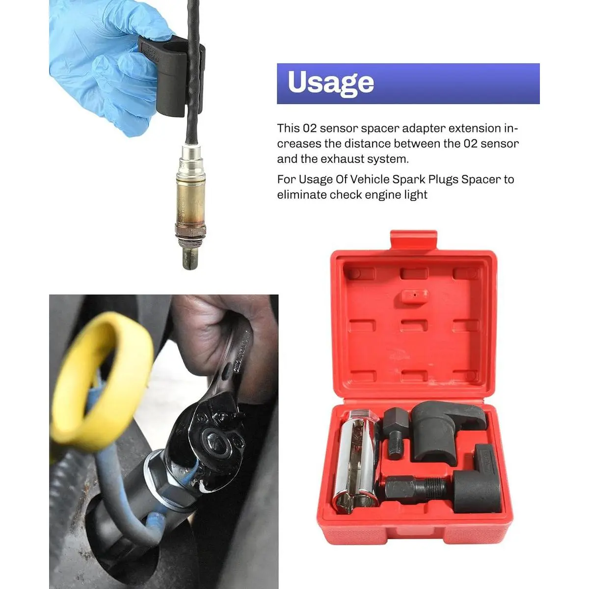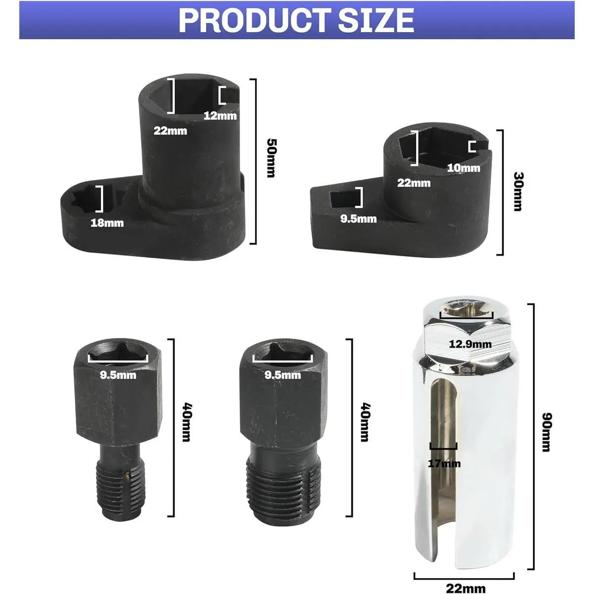 5-piece O2 Oxygen Sensor Socket Set, 3/ 8inch Drive, 7/ 8inch (22mm), Advanced Disassembly Tool, with Threaded Milling Cutter and Offset Wrench, Heavy-duty Automotive Tool Kit, Convenient for Installation and Maintenance