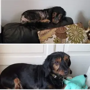 When we got our Dudley, he had a skin infection and a lot of hair loss. Six months later, with his daily dose of salmon oil, his thick, soft coat needs a haircut every six weeks!