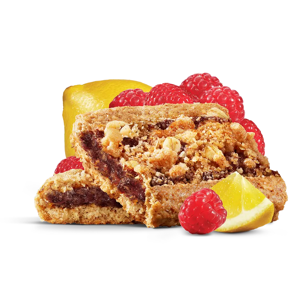 IngredientsRaspberry Lemon Filling (Wheat Syrup,Glycerin,Raspberry Puree (Puree and Concentrated Puree),Brown Sugar,Lemon Juice Concentrate,Pectin,Sodium Citrate,Tricalcium Citrate,Natural Flavors,Elderberry Juice Concentrate for color),Whole Wheat Flour,Whole Grain Oats,Cane Sugar,Date Paste,Canola Oil,Agave Inulin,Brown Rice Syrup,Baking Soda,Cinnamon. Contains Wheat