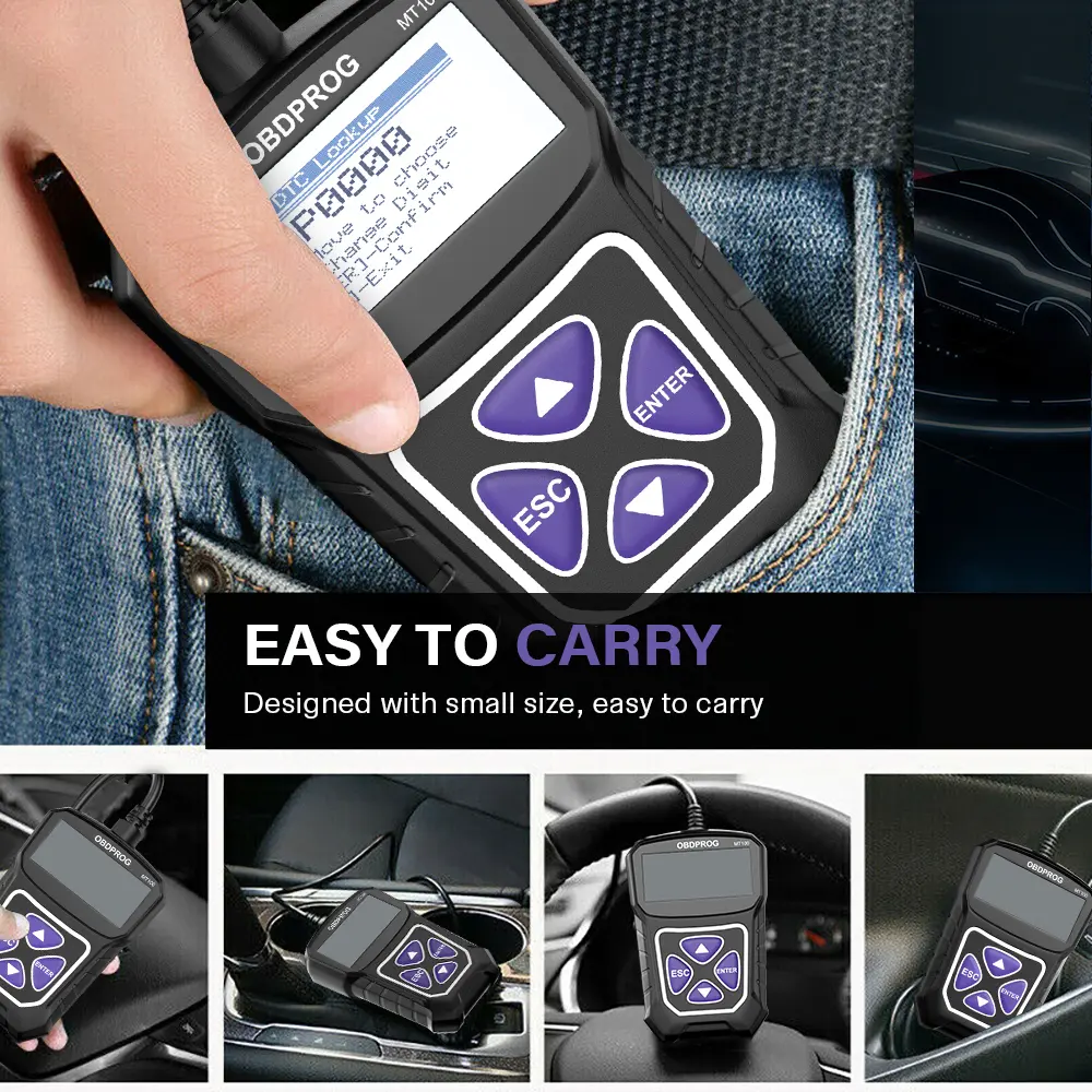 The MT100 OBDII scanner performs full-system diagnostics across all 10 OBDII test modes. Its ergonomic design combines professional-grade functionality with intuitive operation, featuring: