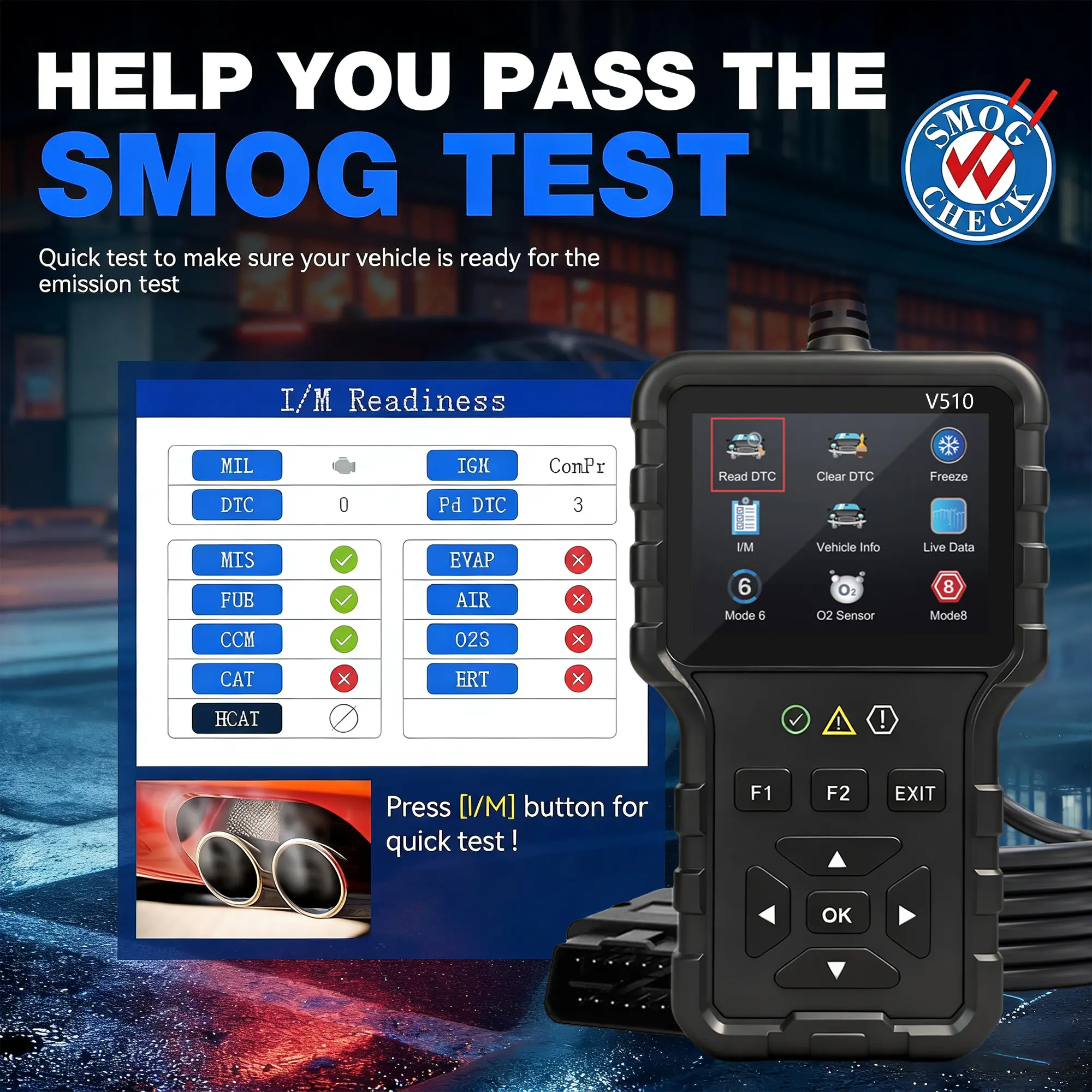 【SMOG Check】: Performs SMOG checks, providing essential environmental compliance verification.