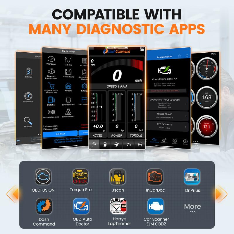·Works with Popular Apps – Compatible with apps like Torque and FORScan for added features like performance tracking and customization.