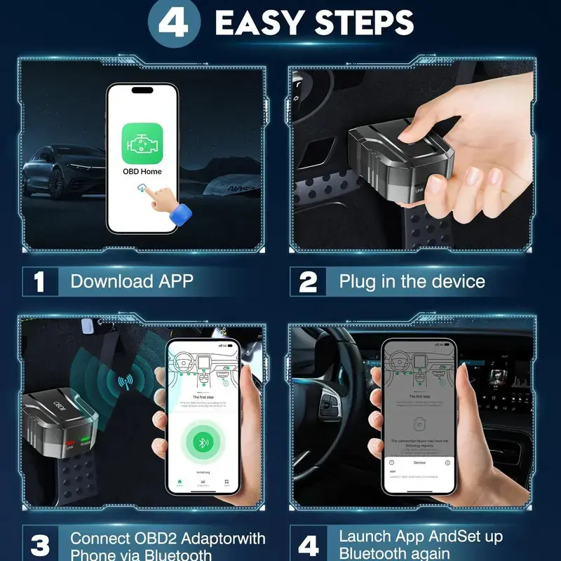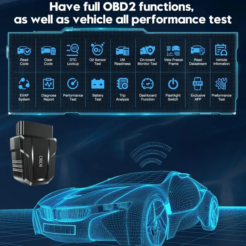 OBD2 Scanner, Automotive Bluetooth Scanner, All System Diagnostic Tool for iOS & Android, Vehicle Health Check, 6 Maintenance Services, Smog Check, Repair Guide, Performance Test