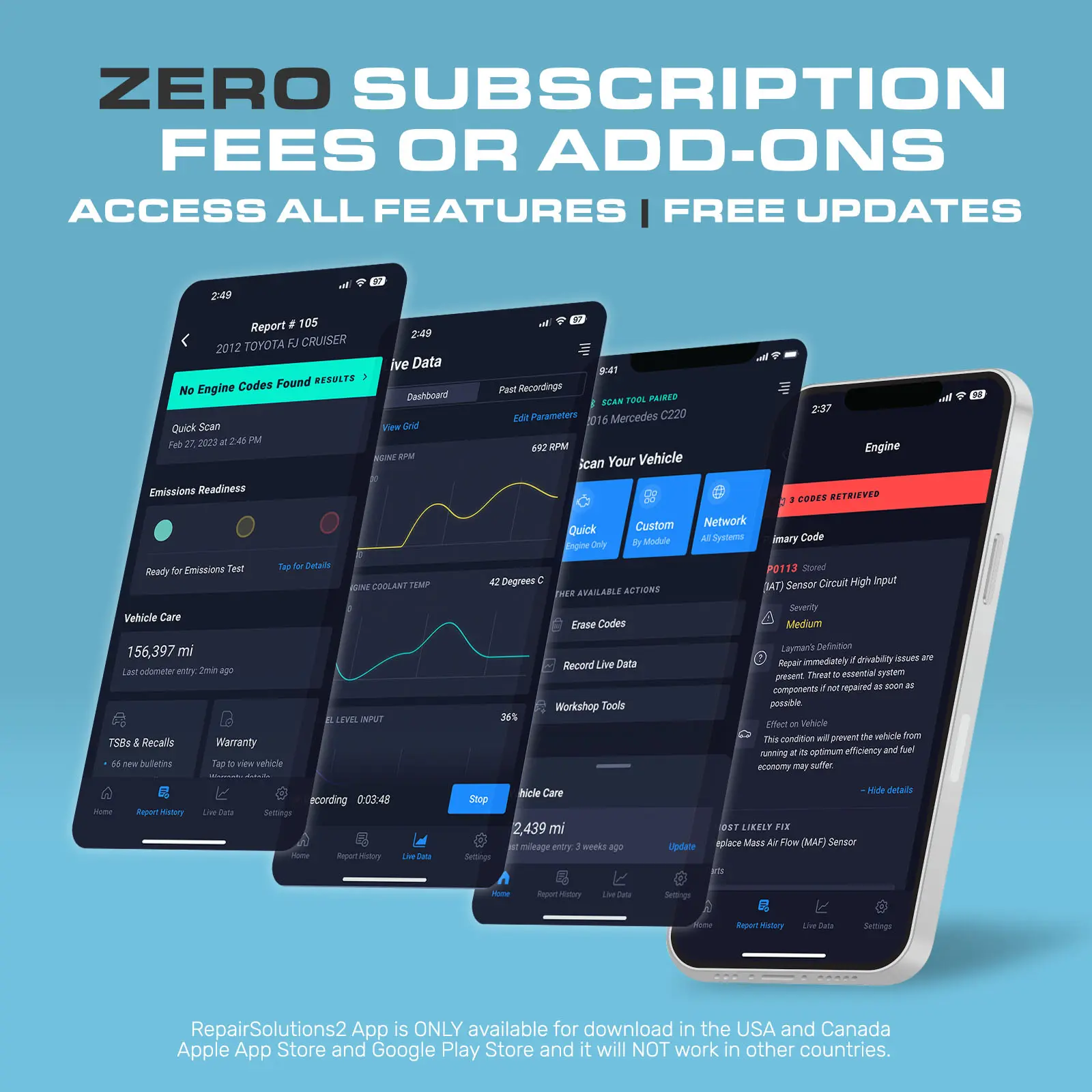 Check Before You Buy: BLCKTEC 430 and the App RepairSolutions2 can only be used in the USA and Canada, other countries and regions will not be supported. While the product works on most OBD2-compliant vehicles 1996 and newer models, available functions may vary by vehicle’s year, make and model. Before purchasing, be sure to use the Compatibility Checker on BLCKTEC website or contact our customer support to ensure the features you need are supported.