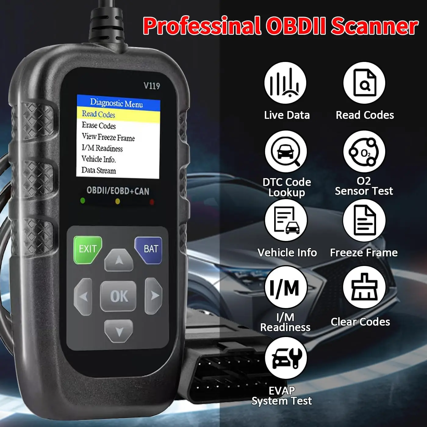【Professional-Grade OBD2 Diagnostics】: This scanner diagnostic tool delivers full OBD2 functionality—read/clear codes, reset check engine lights, analyze freeze frames, test , live data, and run component tests. A -have scan tool for DIYers and mechanics, it doubles as a code reader for and , supporting I/M readiness checks and built-in DTC libraries. Ideal as & accessories for men or garage essentials, the OBD scanner works seamlessly as a diagnostic scanner for .
