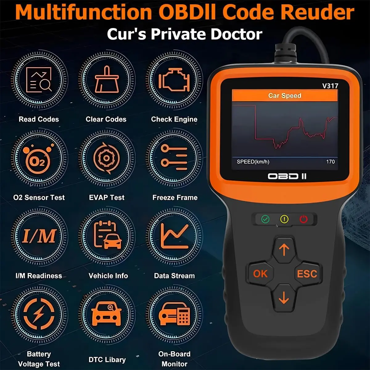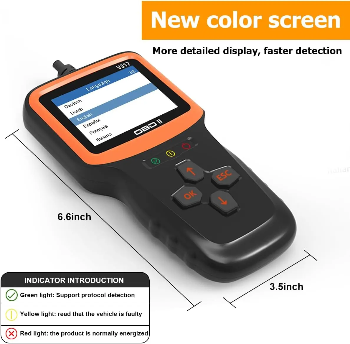 ·Compatible Vehicles — Diagnostic scan tool for all vehicles after 1996 of American, European cars after 2002, Asian cars after 2008(Nissan etc.). Supports English, Spanish, French, German, Italian, Russian and Dutch.
