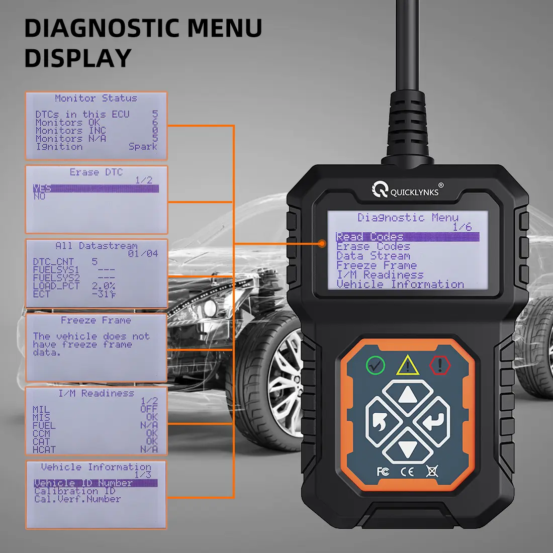 * Displays monitor and I/M state readiness (emissions)