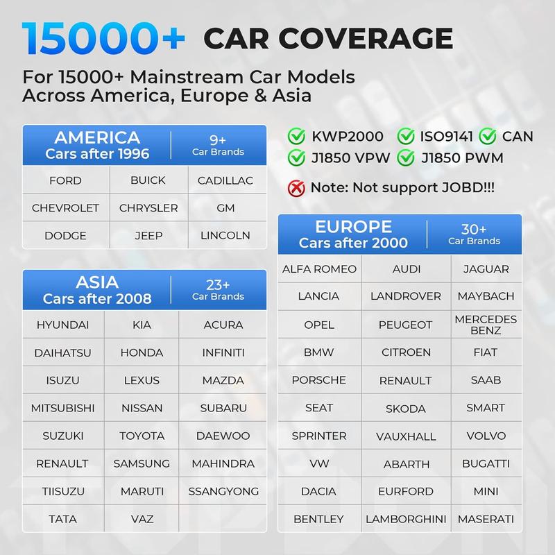 TOPDON AL series OBD2 code reader works on most US-based cars since 1996, EU-based cars since 2000, and Asian-based cars since 2008, and is compatible with all the OBD2 protocols: KWP2000, ISO9141, J1850 VPW, J1850 PWM, CAN (Controller Area Network).