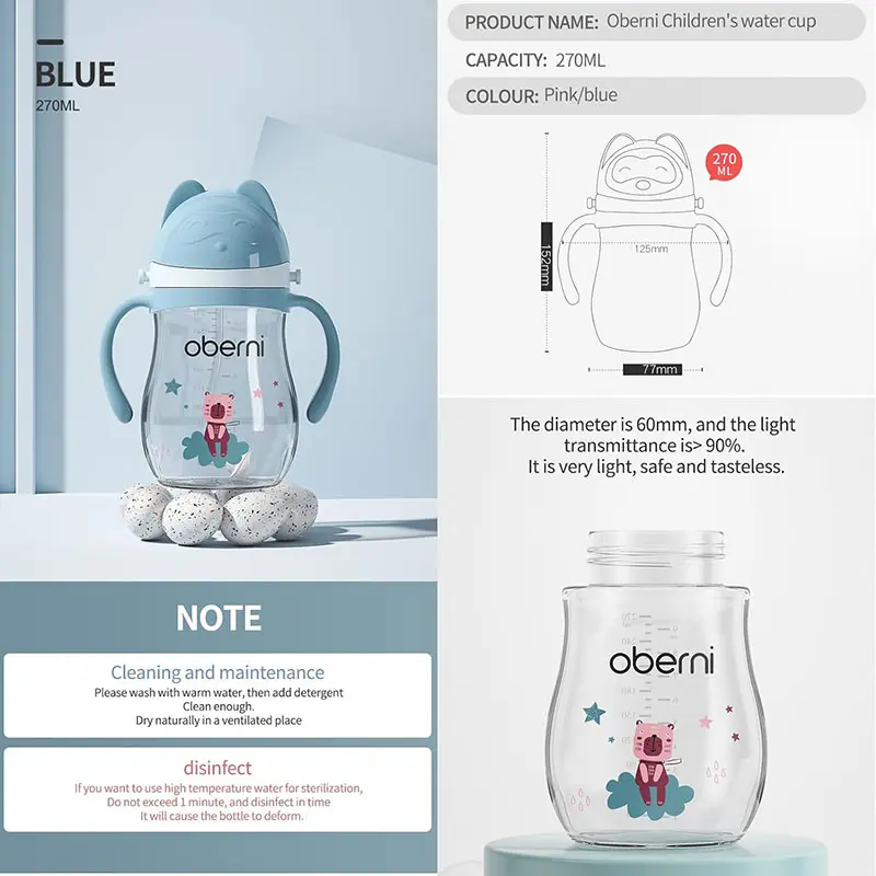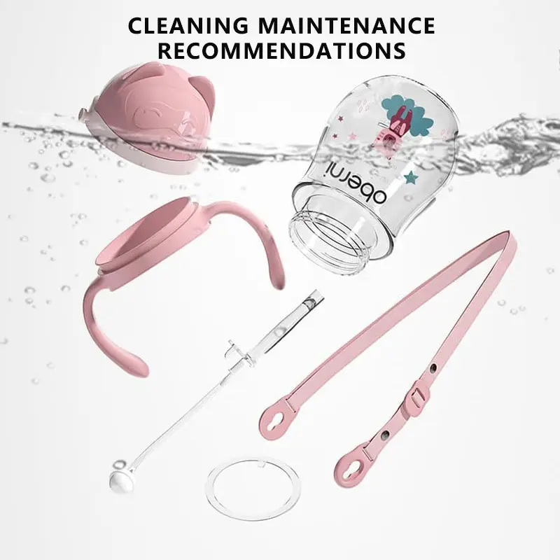 All parts of the Oberni wide-neck Baby sippy cup are removable. You can easily disassemble and assemble the handle, weighted straw, and spout for easy cleaning and sterilization.