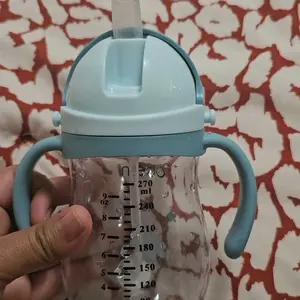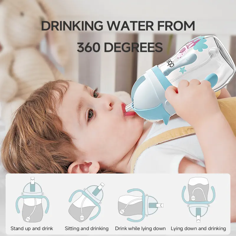 These baby water bottles feature weighted straws that move with the liquid. Babies can tip and sip while standing, sitting, or lying down. The design promotes independence and ease of use for toddlers.