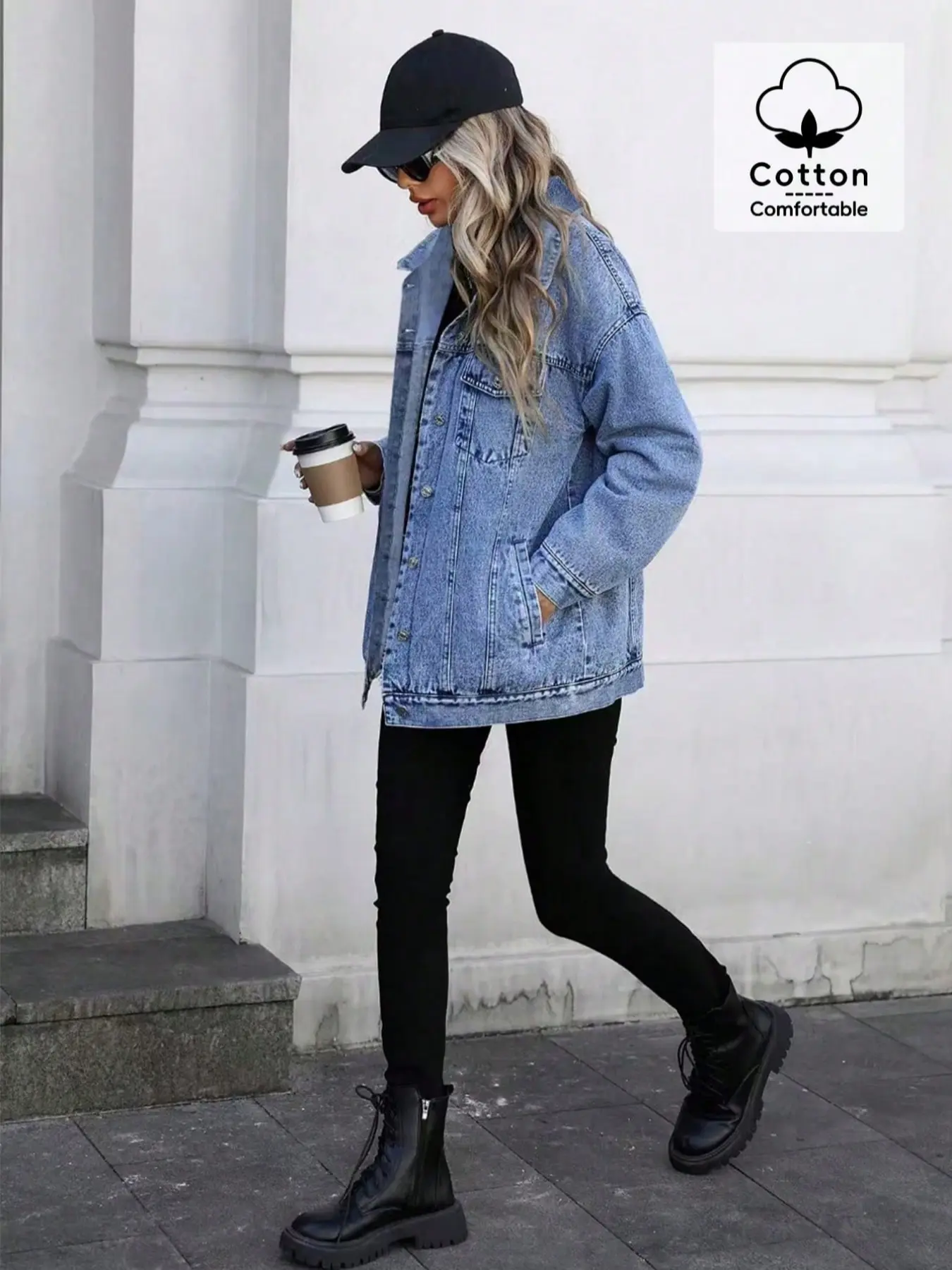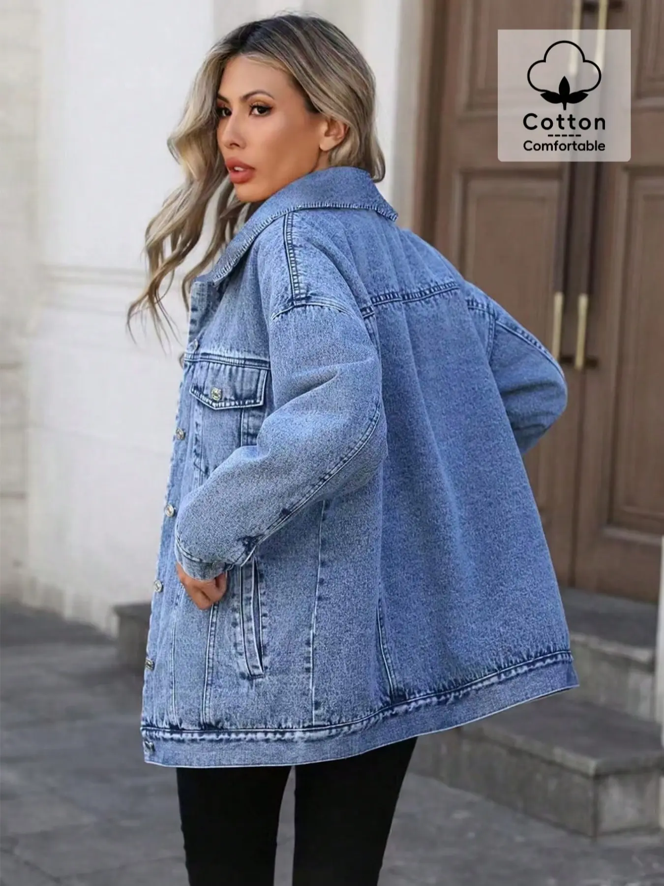 OBlue Jeans Elegant Street Style Loose Fit Denim Jacket, All Season Casual Wear, Versatile and Comfortable, Perfect for Everyday Use #TikTokShopBlackFriday #TikTokShopCyberMonday #spotlightfinds #ootd/  #clothing