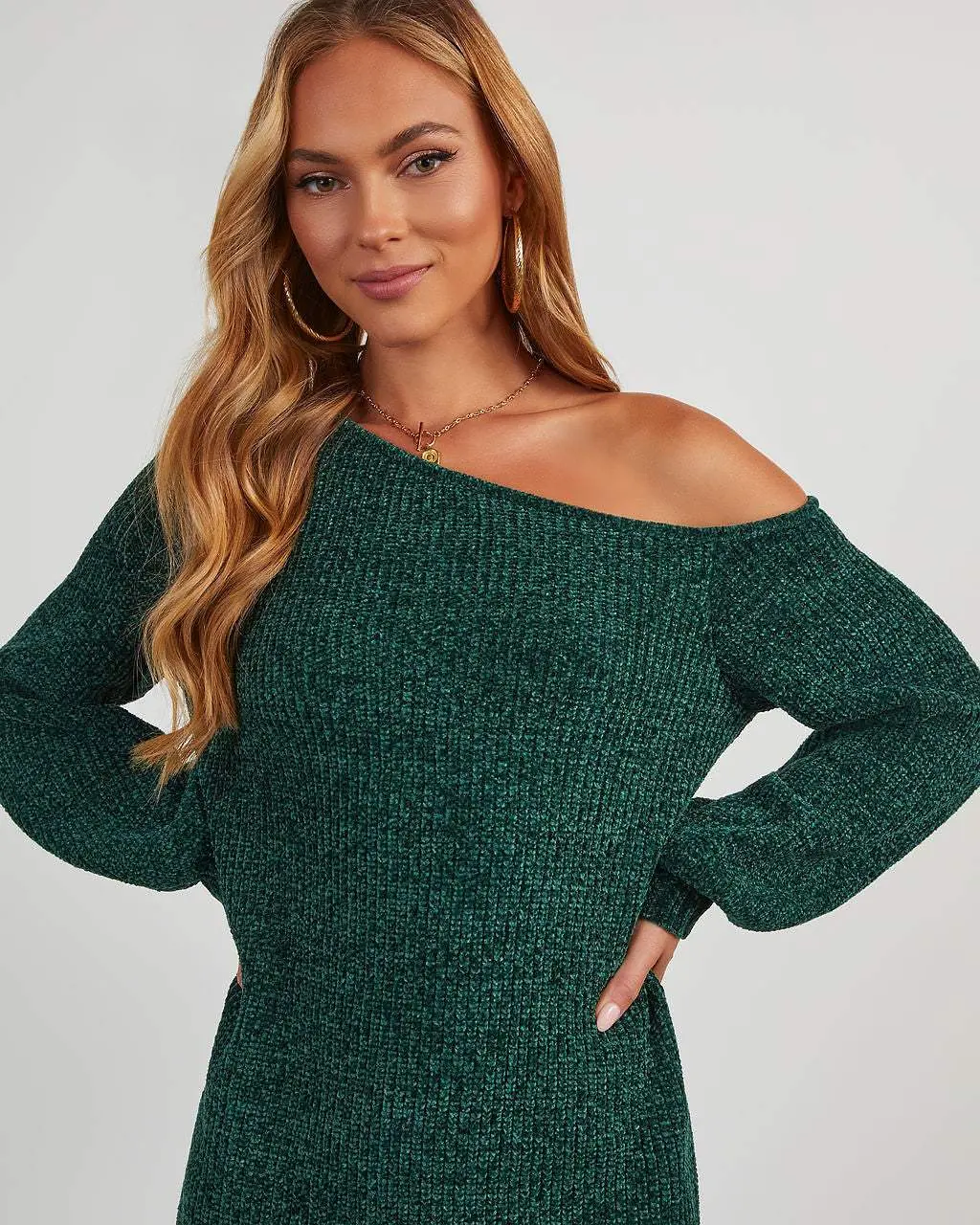 5. Obsessed With Me Chenille Off The Shoulder Mini Dress