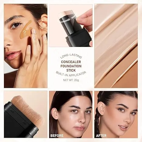 【Suitable for All Skin Tones】: Available in a range of skin-perfect shades, this full coverage foundation stick unleashes the power of makeup to transform your look. Continue throughout your daily activities and nights out for a stunning, irresistible, long-lasting look, whether you're dark, brunette, fair, or yellow.