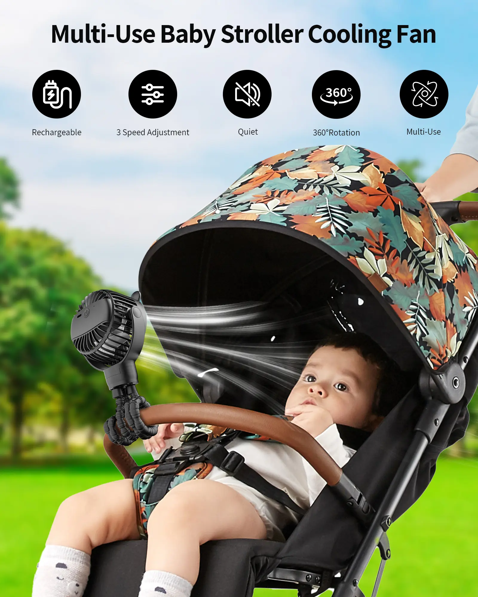 This is my second time buying this fan! I found out quickly that this affordable fan (with FREE SHIPPING 😉) works wonders for my twins on hot days! Also who doesn't love an item that's practical, and rechargeable! You get way more than your money's worth from this! The battery life is great, you can wrap the legs of the fan around literally anything and it will stay in place. Don't hesitate to buy!!