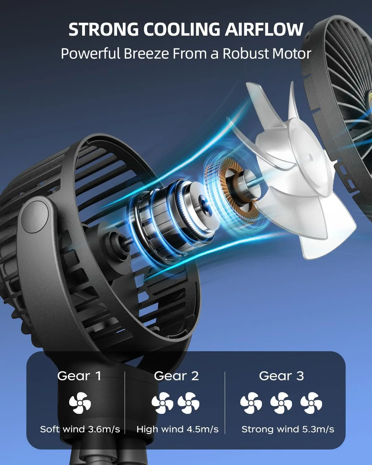 I love this fan! It has three different strength settings. The legs are super nice and I can literally put it anywhere k want on the golf cart.
