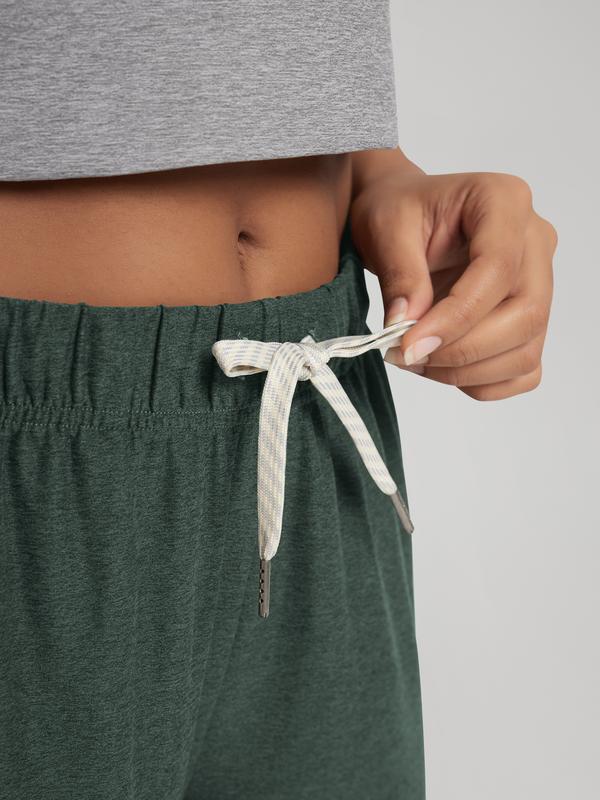 ·CUSTOM-TIE WAISTBAND: A wide, mid-high rise waistband with an easy-tie drawcord ensures a no-dig, stay-in-place feel that moves with you—part of the relaxed-fit design.
