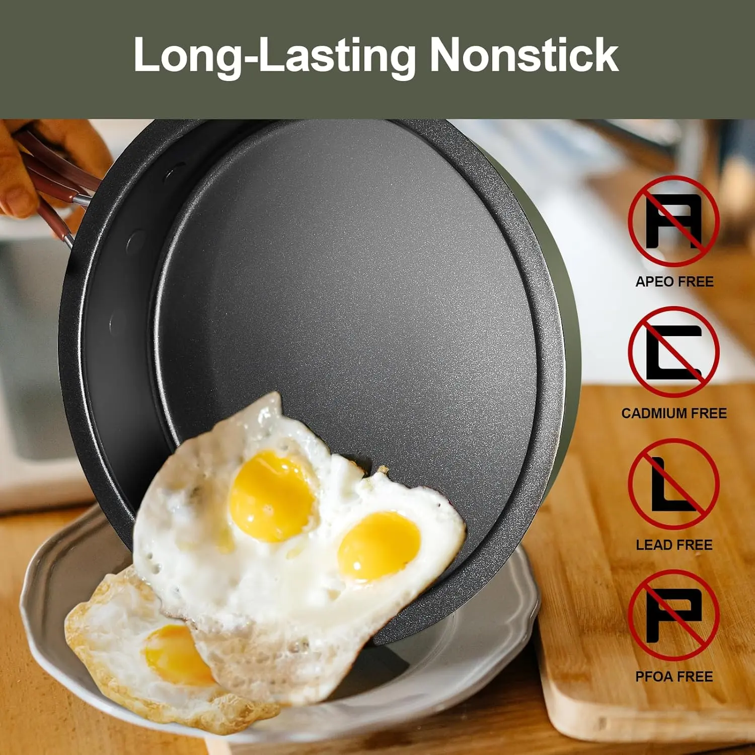 ·Non-Stick Coating - The cookware set features a non-stick coating that is safe and non-toxic, ensuring no more burnt food. Please read the included product care card carefully before use.