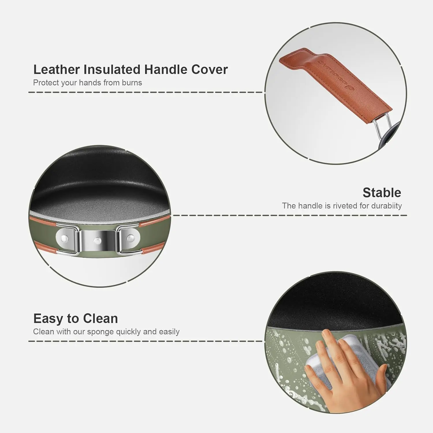 ·High Quality Pot And Pan - Made from premium aluminum alloy, the pot and pan ensure even heat distribution and easy cleaning. The leather handle cover provides a comfortable, high-temperature resistant, and safe grip.