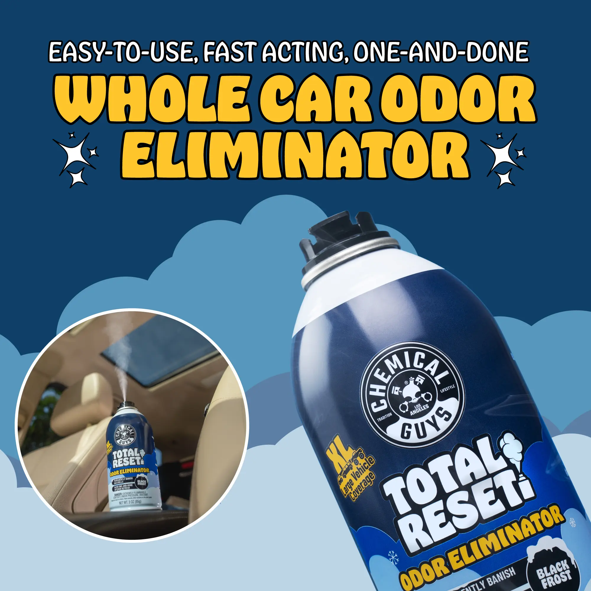 CHEMICAL GUYS Total Reset Odor Eliminator Bundles – Whole-Car Odor Neutralizing Kits with Total Reset A/C-Activated Odor Bombs, Destroy Smells at the Molecular Level & Leave Long-Lasting Fresh Scents for Cars, Trucks & SUVs