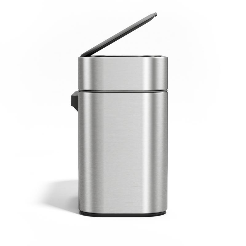 Feed your garden and store compost scraps easily and efficiently with our odor-minimizing stainless steel compost caddy. It attaches to a magnetic dock that hangs at the side of your rectangular or slim liner rim trash can, or you can detach it for use on your kitchen counter. The soft-seal lid allows food scraps to breathe, keeping odor under control and pests away. The plastic inner bucket is removable so it's easy to dump out scraps or clean.