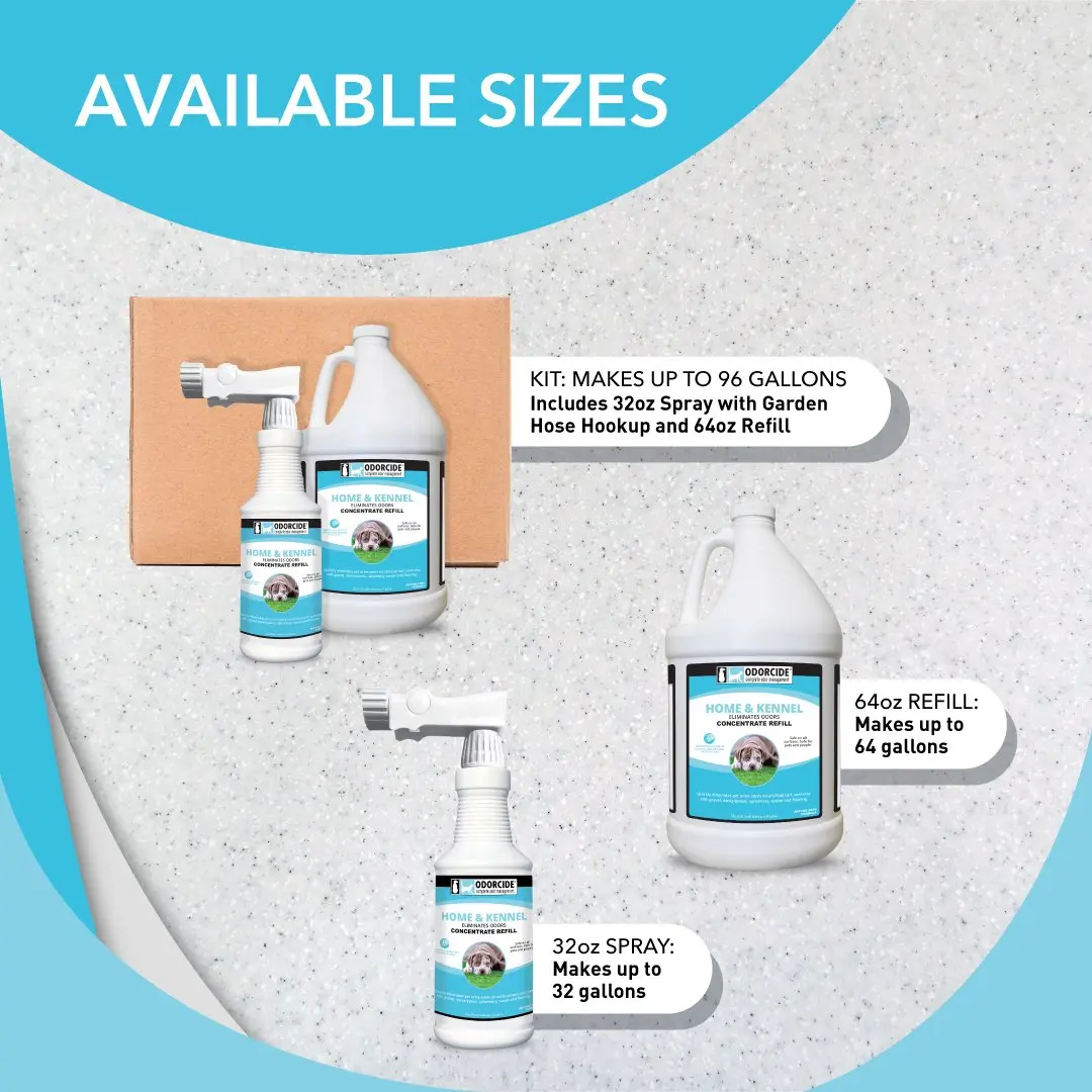 Odorcide Home & Kennel will eliminate all kinds of odors including dander, urine, and fecal odor.