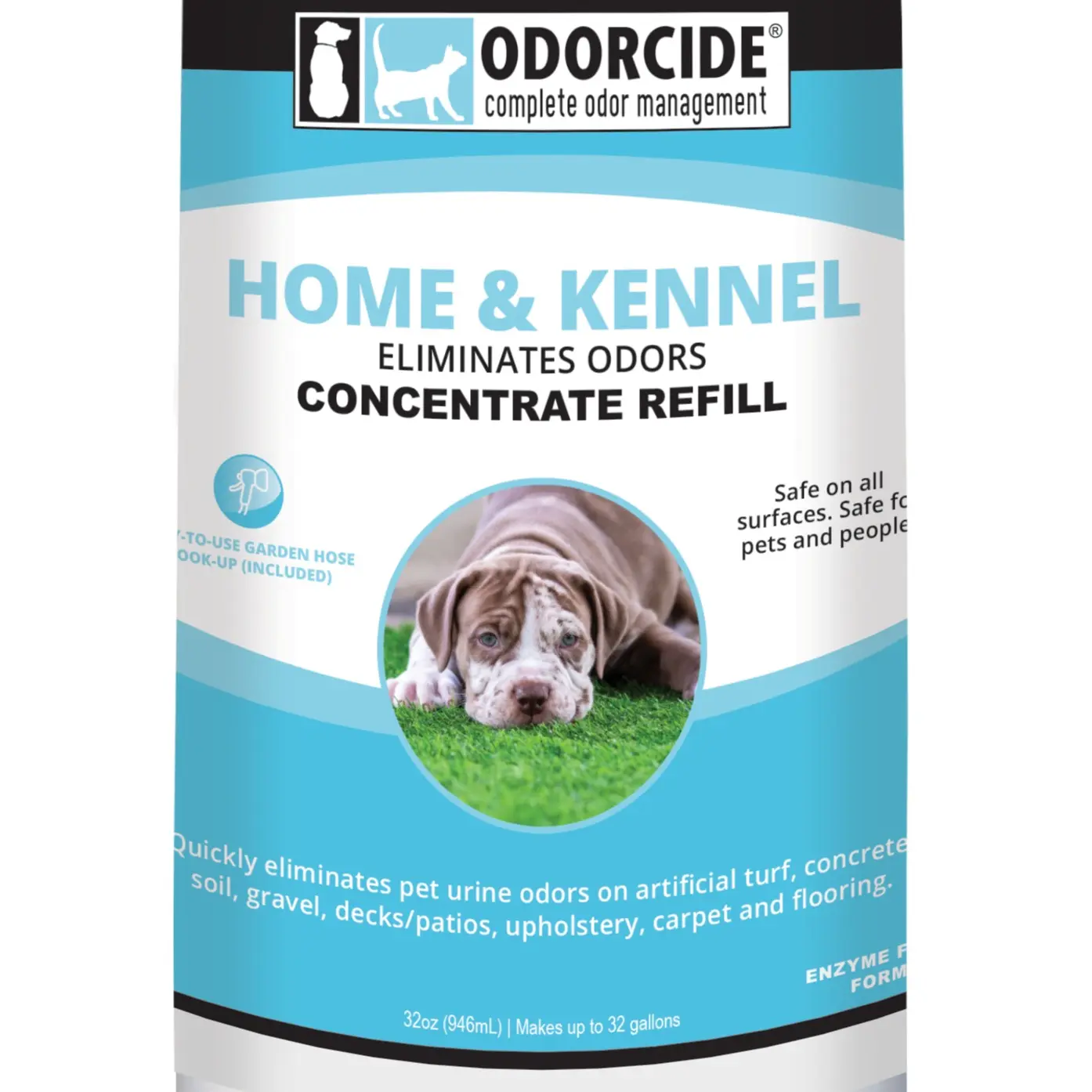 Use it on carpet and upholstery inside or use it on gravel, concrete, and grass outside. Works best with a pump-up sprayer or garden hose applicator. Dilute with regular tap water, pump up the tank and apply. Then let air dry. Odorcide Home & Kennel has a pleasant fragrance that dissipates as it dries. Kit makes up to 96 gallons.