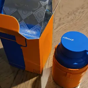 The bottle is encased in a vibrant orange box with a blue sleeve, making it a standout choice for fragrance enthusiasts. The limited edition design ensures this perfume stands out in any collection. Perfect for those who appreciate unique, eye-catching packaging.